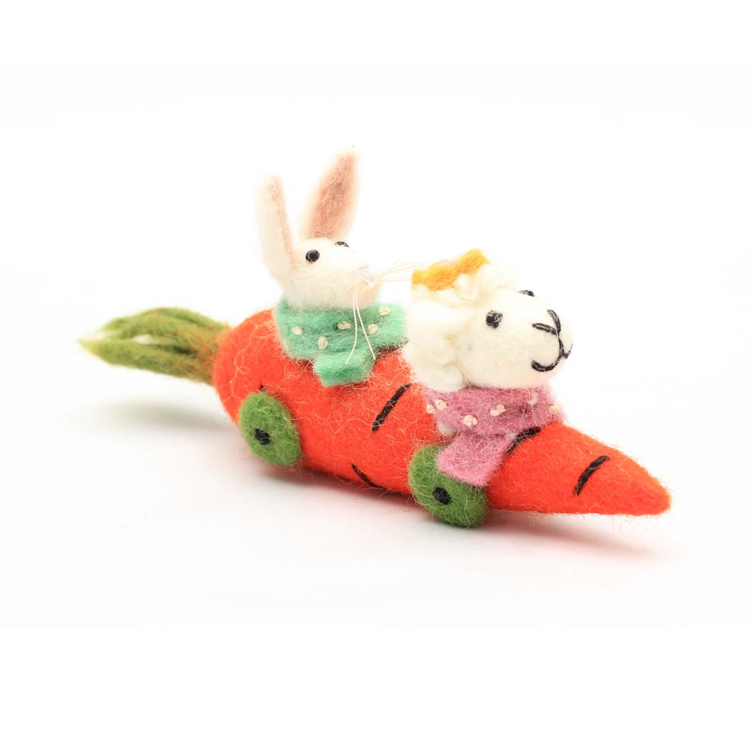 La Formula 1 non ha nulla da invidiare a questa simpatica coppia formata da un coniglietto e una pecorella nella loro macchina da corsa a forma di carota! Fate presto, questi ragazzi vanno veloci!