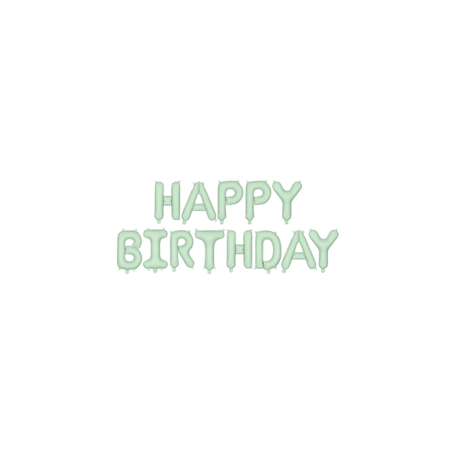 Palloncini da gonfiare che formano la scritta HAPPY BIRTHDAY di colore verde pastello. Si gonfia semplicemente a bocca attraverso l'utilizzo di una semplice cannuccia non in dotazione per riempire il palloncino di aria.wow!!!