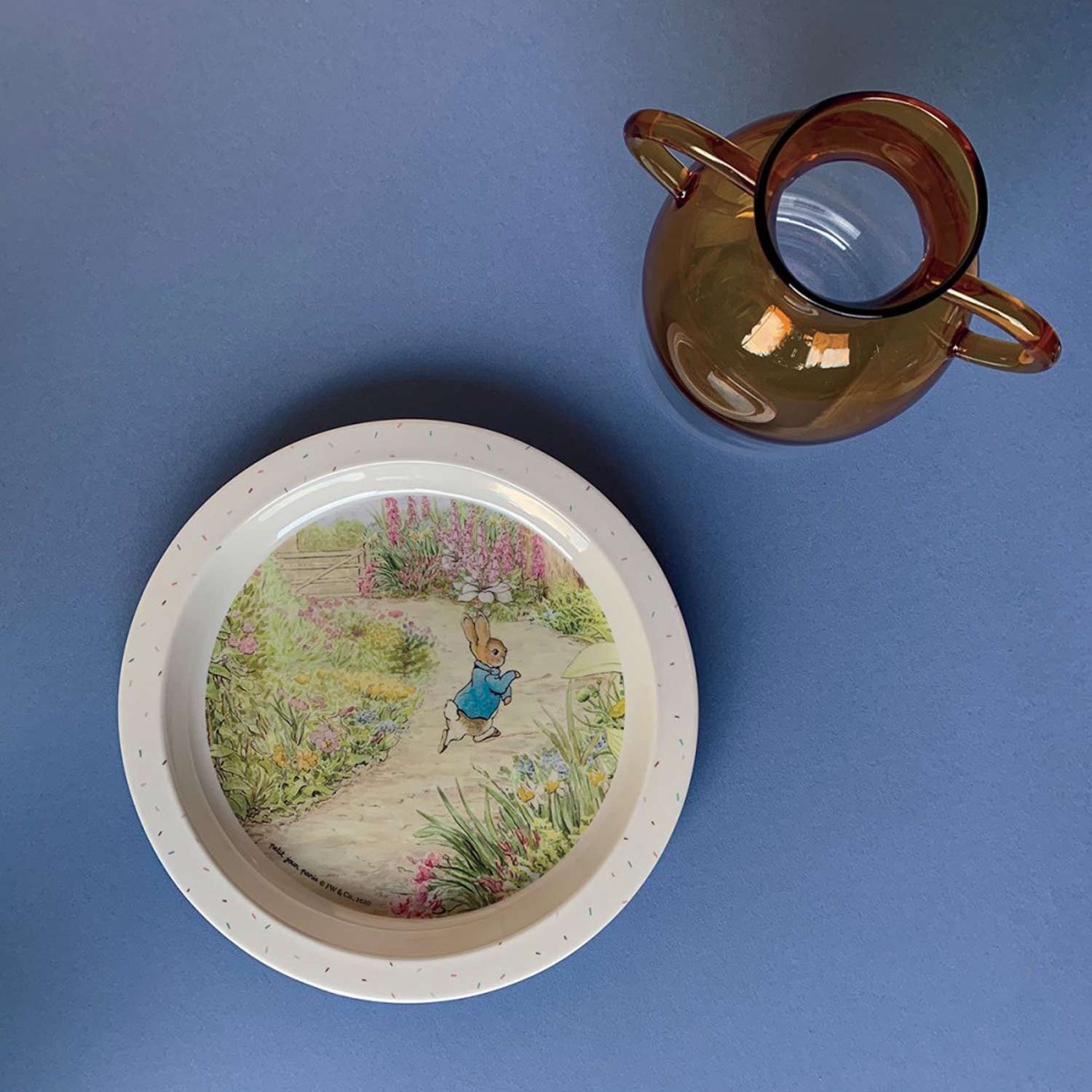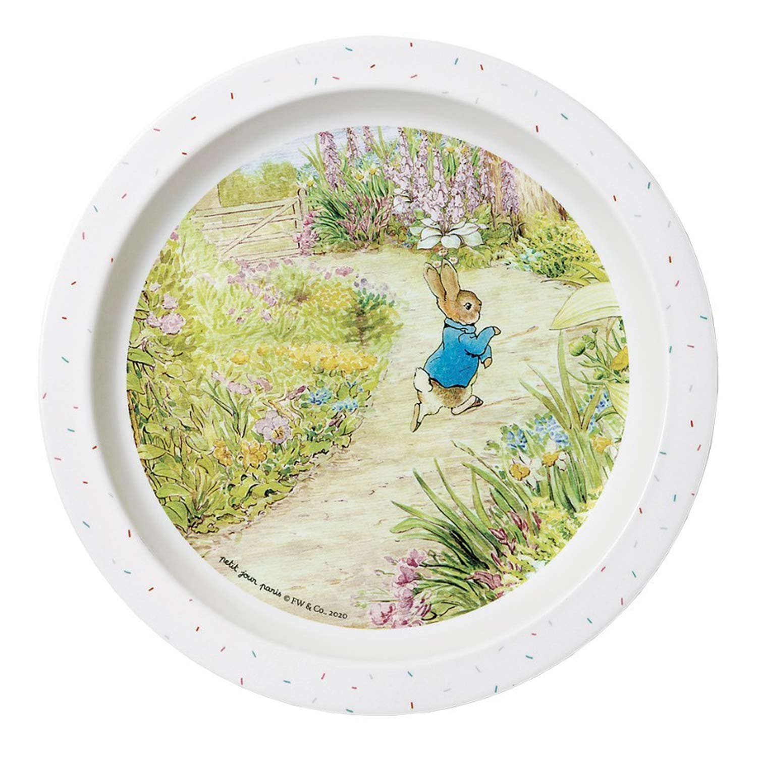 Piatto piano bimbo fantasia Peter Rabbit in giardino
