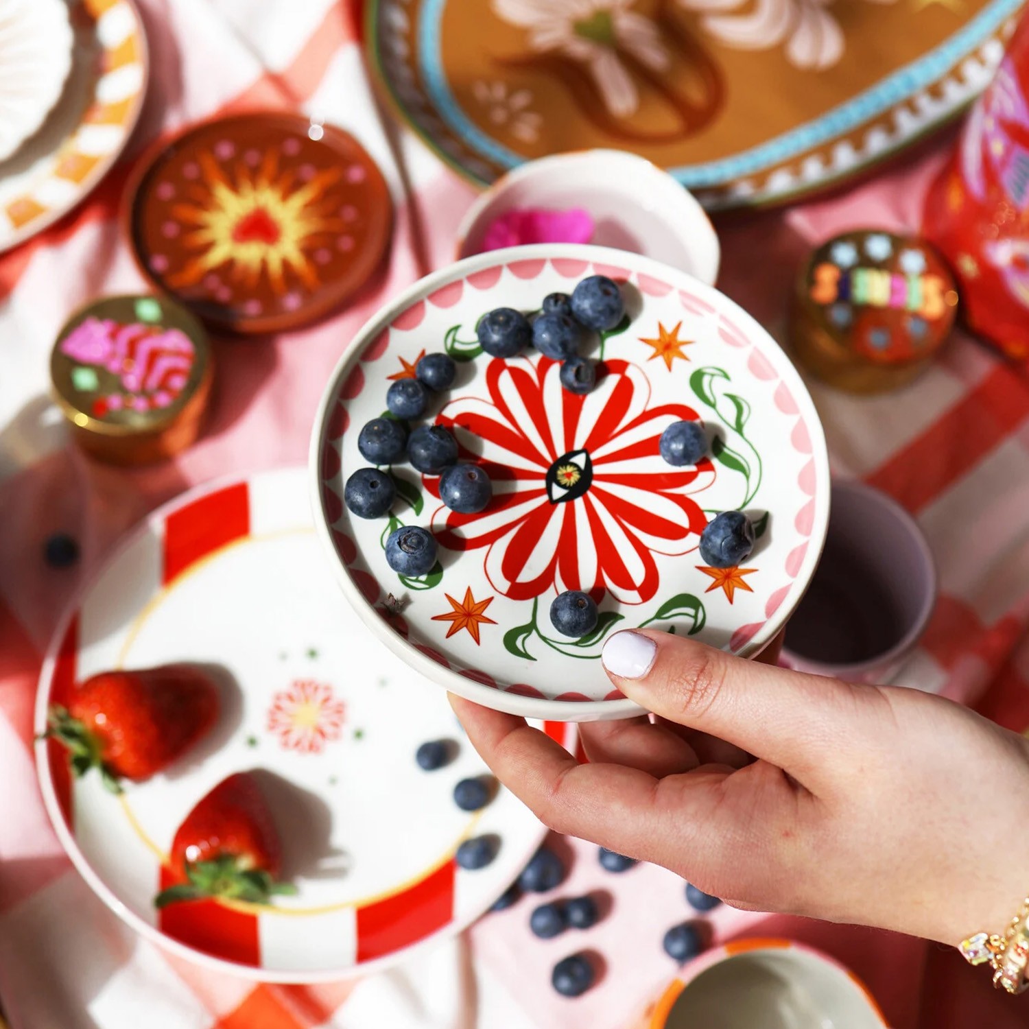 Questo piatto da dessert è realizzato in ceramica di alta qualità ed è decorato con un motivo floreale sui toni del rosso e del verde, ispirato alla natura e alle influenze culturali di tutto il mondo. Perfetto per decorare la tavola con colore e per creare divertenti mix&match di fantasie. Smaltato con cura per un utilizzo quotidiano, può essere lavato in lavastoviglie.