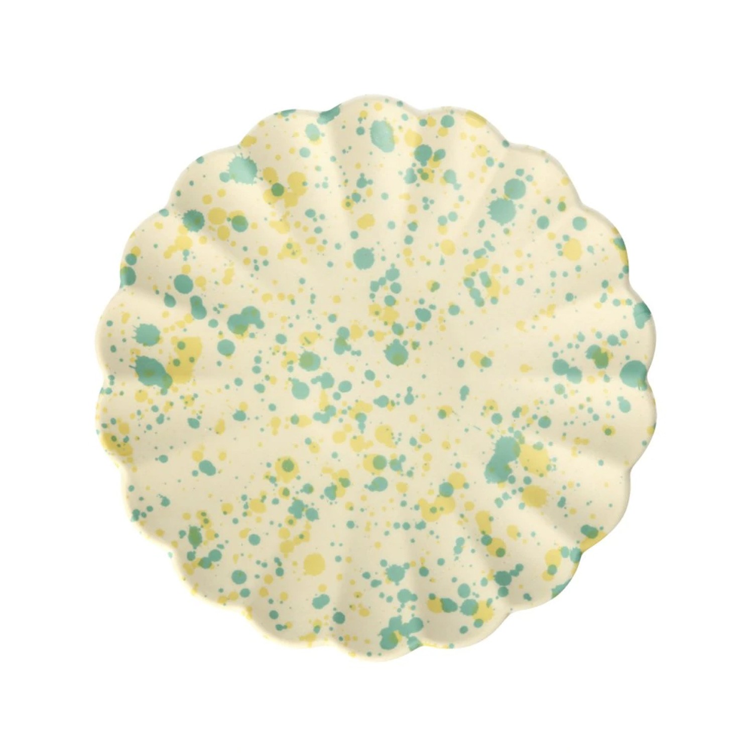Piatto da dolce in bambù con schizzi verdi e gialli