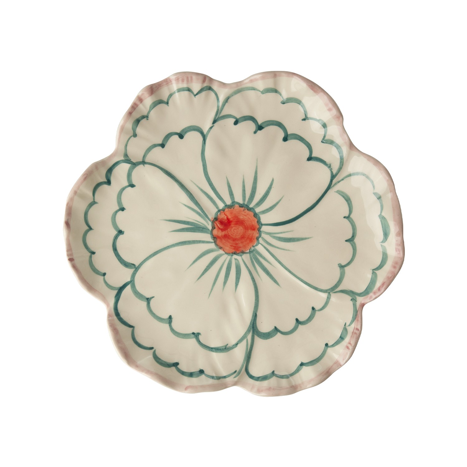 Piatto da dolce in ceramica a forma di fiore con bordo rosa