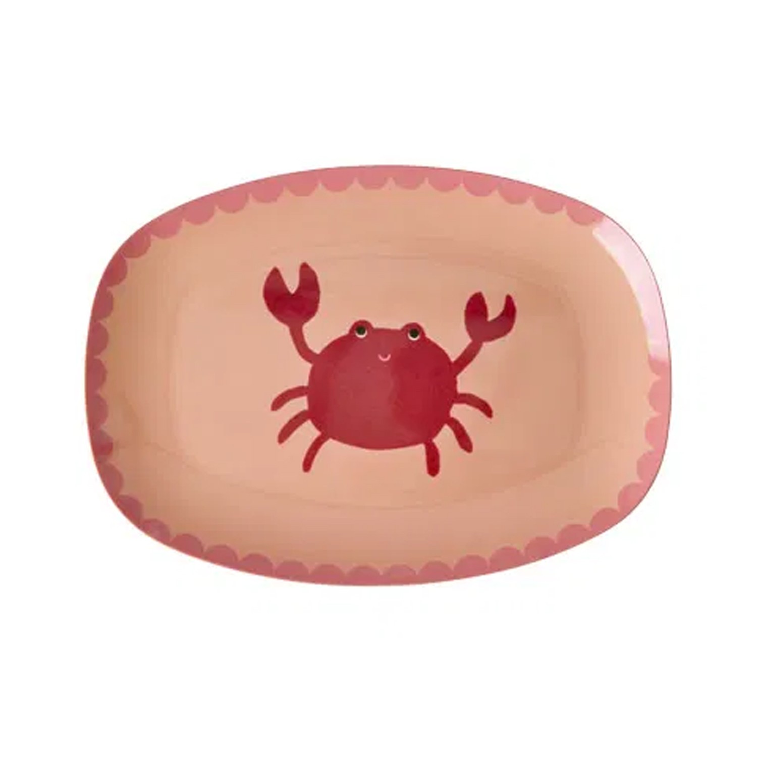Porta un’ondata di allegria e colore sulla tua tavola con questo piatto da dolce ovale in melamina, leggero e perfetto per le merende all’aperto, i pranzi in giardino o per aggiungere un tocco giocoso alla quotidianità dei più piccoli. Al centro del vassoio spicca un dolce granchio rosso sorridente, incorniciato da un delicato bordo smerlato in una tonalità di rosa più intensa. La sua linea ovale lo rende ideale per servire una fetta di torta, piccoli pasticcini o della frutta fresca tagliata.