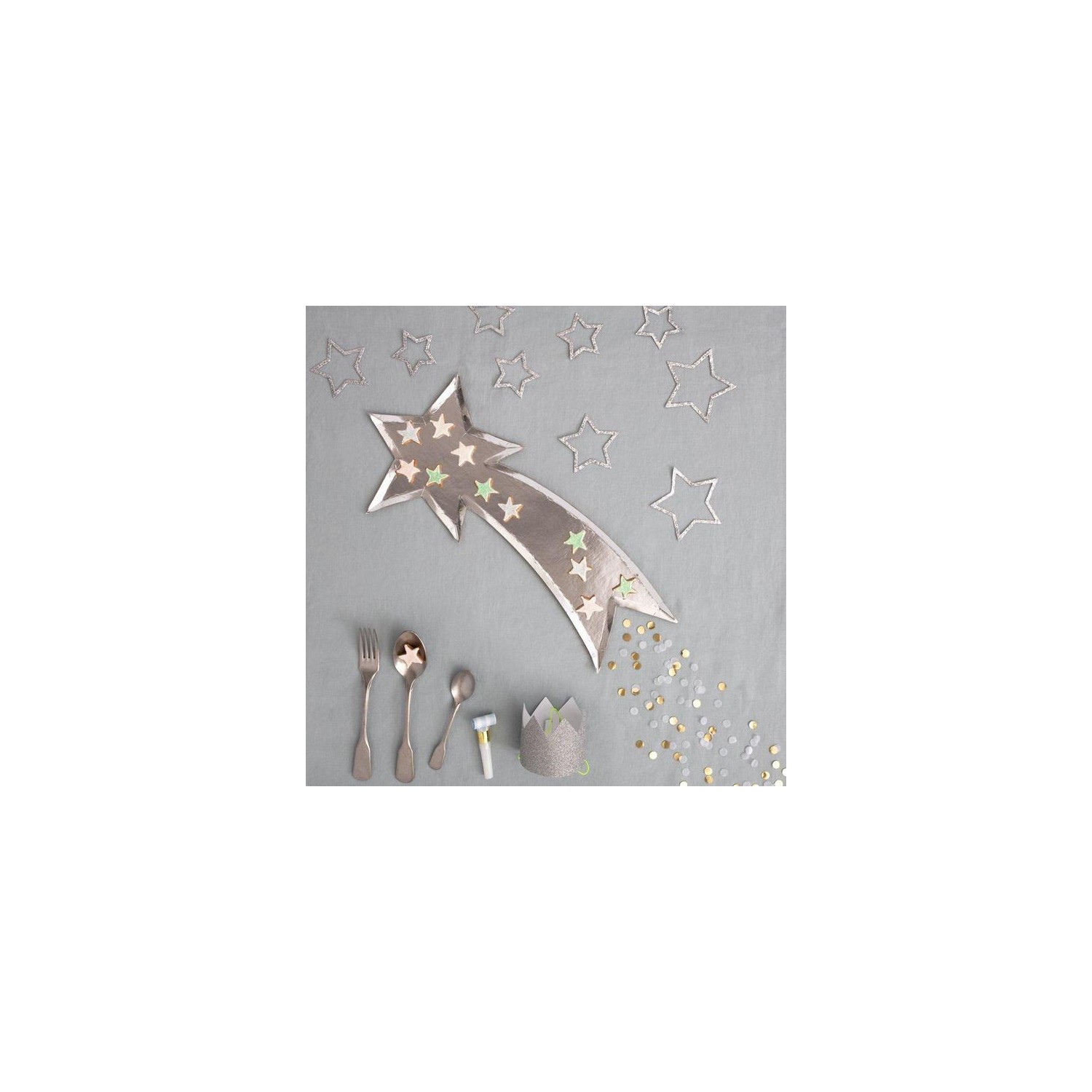 Se stai cercando qualcosa di elegante e fuori dall'ordinario per servire prelibatezze durante le Feste, allora questi graziosi piatti a forma di stella cadente faranno per te! Sono splendidamente realizzati in lamina d'argento con una finitura lucida, perfetti come centrotavola o per servire tartine e tanti altri dolcetti agli ospiti con un effetto davvero chic!