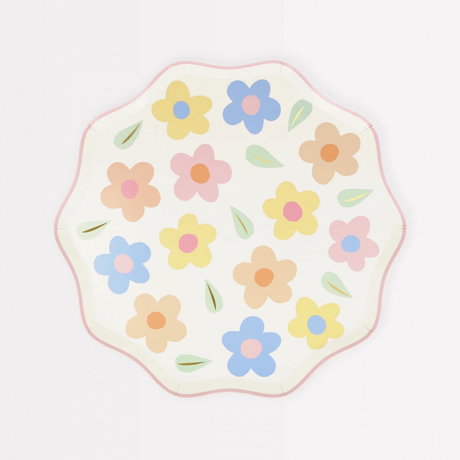 Profumo di primavera con i nuovi piattini di carta Happy Flowers di Meri Meri! Perfetti per compleanni, feste in giardino, picnic o ovunque si desideri un favoloso effetto floreale, questi piattini di carta sono impreziositi con una bellissima fantasia floreale pastello e rifiniti con bordi ondulati rosa. Piccoli dettagli dorati sulle foglioline aggiungono un tocco di luce speciale, che renderà la vostra festa un vero successo! Confezione da 8 pezzi.