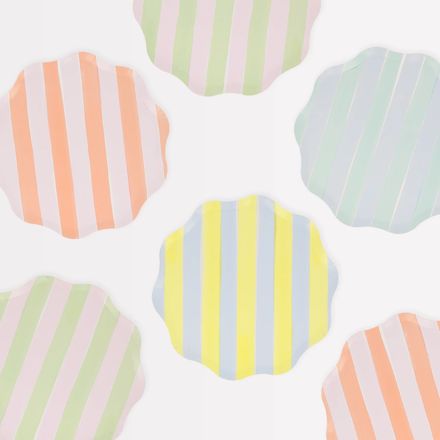 Le strisce effetto dipinto in freschi colori pastello sono un'aggiunta divertente a qualsiasi festa in un design senza tempo. Questi piatti di carta, con un meraviglioso bordo ondulato, sono ideali per la disposizione a strati sul tavolo. Funzioneranno bene per feste in giardino, cocktail party, picnic, baby shower o ogni volta che desideri un tocco di colore primaverile. Abbinali ai nostri tovaglioli e bicchieri di carta a tema!