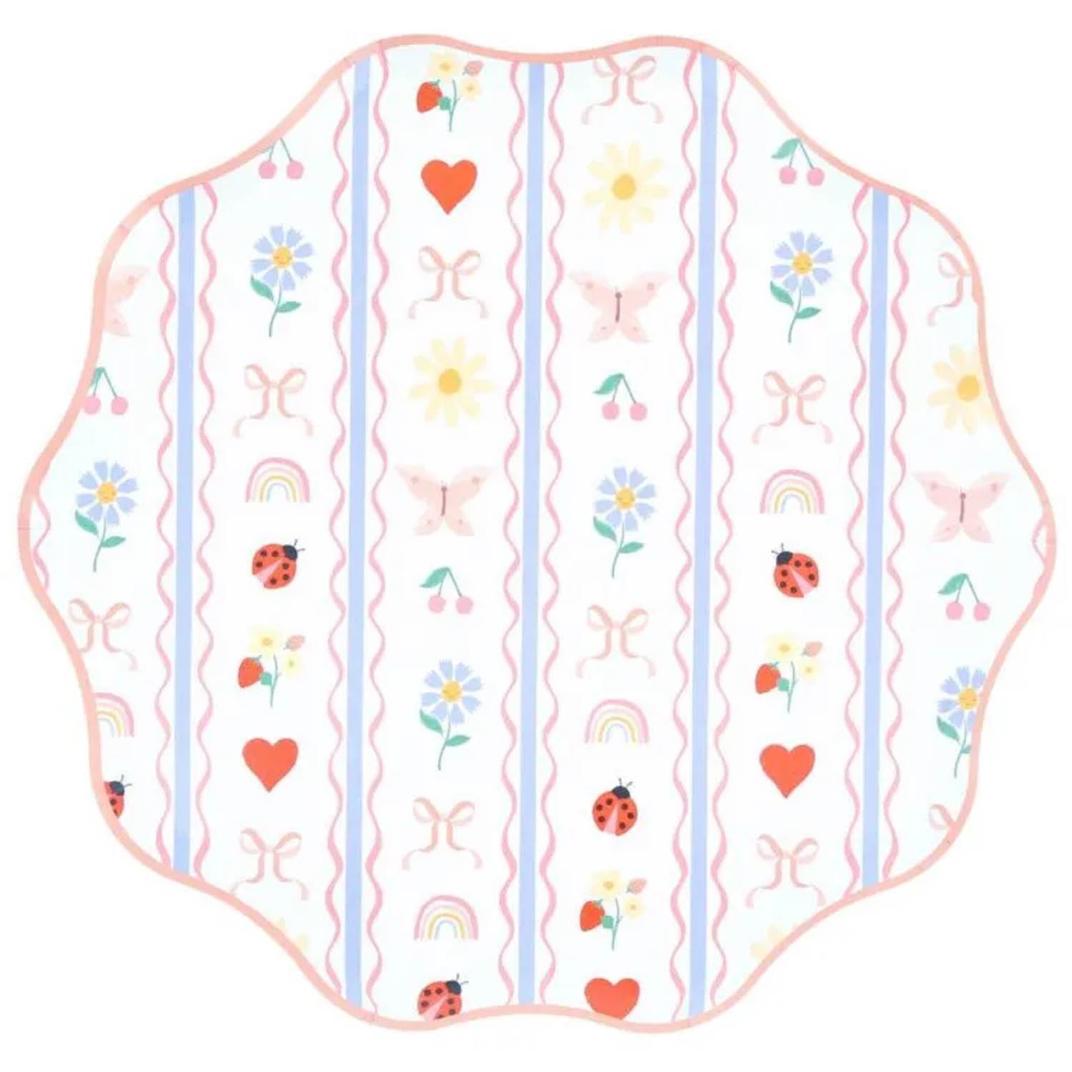 Ricchi di dettagli giocosi, i nostri piatti di carta Little Garden trasformeranno ogni pasto in una festa. Il grazioso motivo ispirato ai tessuti, con coccinelle, cuori, farfalle, ciliegie, fiocchi, fiori e arcobaleni, incanterà con delicate tonalità di rosa, rosso e blu. Rifiniti con un bordo ondulato rosa e il retro rosa, risultano elegantemente affascinanti da ogni angolazione. Divertenti, freschi e pieni di gioia, sono ideali per baby shower e compleanni, dalle prime candeline ai sogni adolescenziali. Realizzati in carta da 450 g/m², questi piatti piani sono pratici e decorativi. Bordo ondulato rosa. Rosa anche sul retro, per un look elegante da ogni angolazione. Confezione da 8 piatti piani.