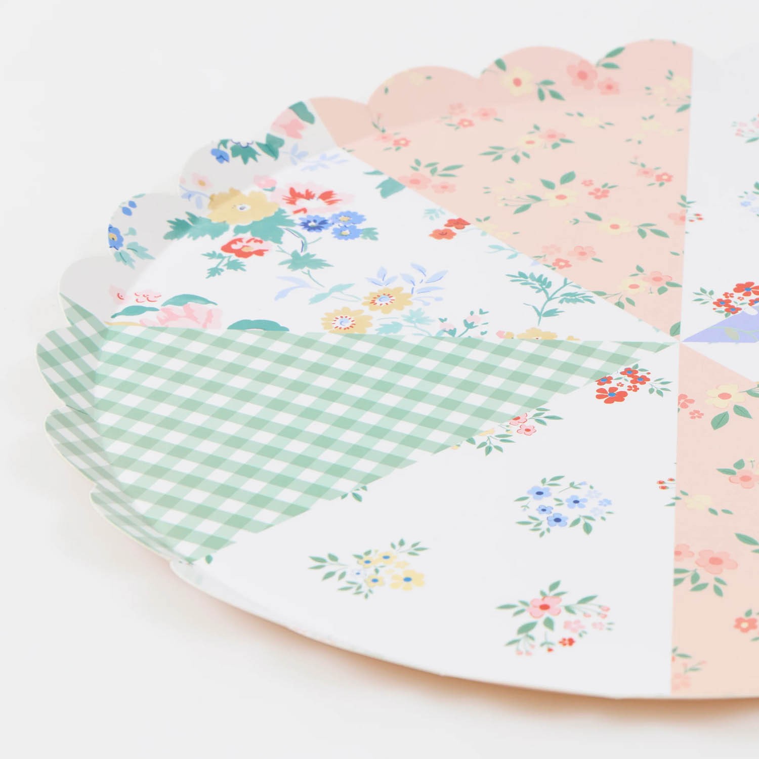Il patchwork continua ad affascinare per la primavera e l'estate e questi piatti di carta sono il modo perfetto per portarlo in tavola. Caratterizzati da un grazioso mix di tonalità blu, verdi, pesca e rosa con delicati dettagli floreali e a quadretti, ogni piatto è rifinito con un elegante bordo smerlato. Il retro è di un delicato color pesca per un look elegante da ogni angolazione. Ideali da abbinare ad altre stoviglie per baby shower, addii al nubilato e compleanni di tutte le età.Realizzati in carta da 450 g/m², questi piatti di carta sono pratici e decorativi. Bordo smerlato. Il retro è color pesca per un effetto elegante da ogni angolazione.
