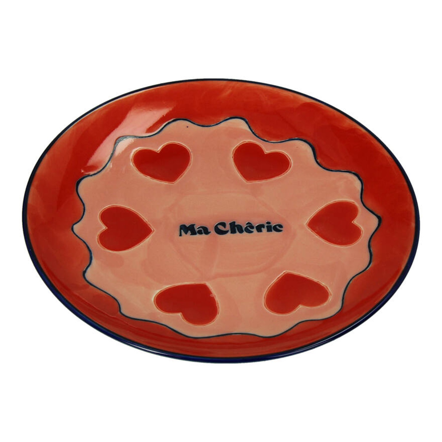 Piatto fondo in gres con cuori e scritta Ma Cherie