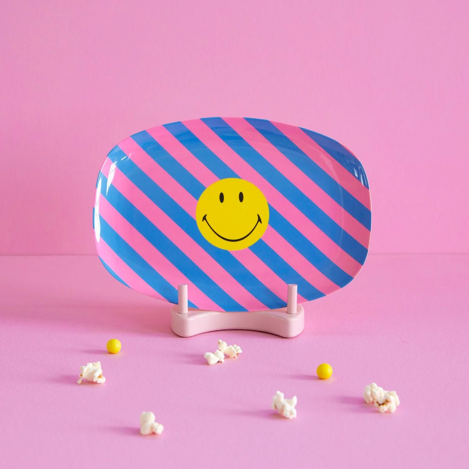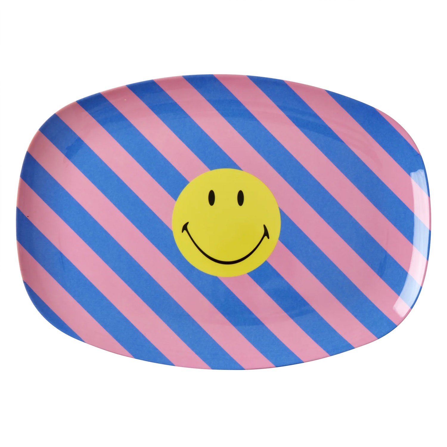 Direttamente dalla nuova collabo Rice x Smiley, piatto ovale in melamina con fantasia a righe rosa/azzurre e simpatico smile disegnato. Così pratico e bello sia per uso interno che esterno, ti fa subito venire voglia di estate! Abbinalo agli altri prodotti della stessa linea per una tavola davvero top!