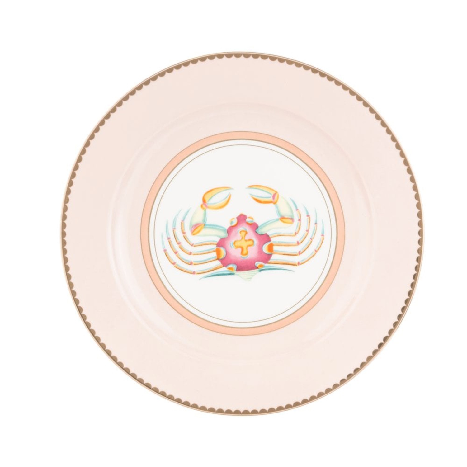 Piatto piano in porcellana rosa con granchio