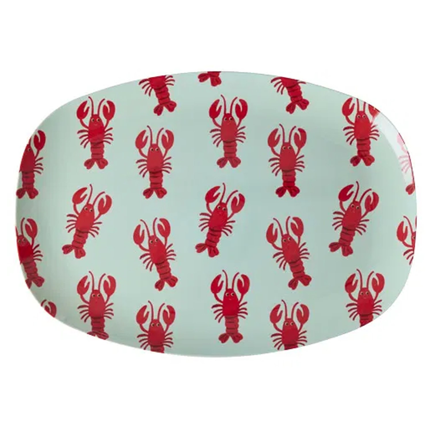 Questo piatto ovale in melamina celeste, con simpatica fantasia di aragoste disegnate all over, è così pratico e bello sia per uso interno che esterno, e ti fa subito venire voglia di estate! Abbinalo alle tazze e bicchieri della stessa linea per una tavola davvero top!