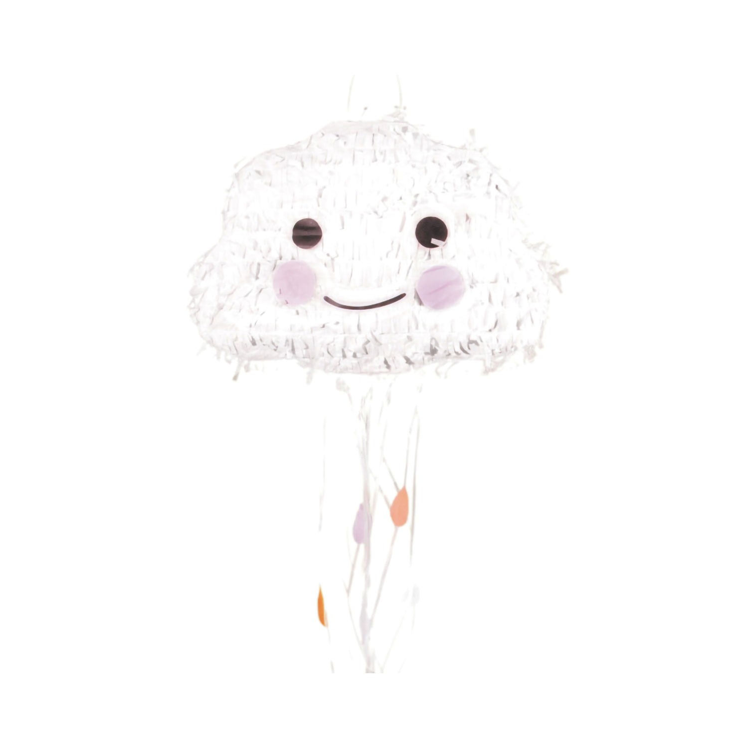Una dolcissima pignatta a forma di nuvoletta sorridente con le guanciotte rosa sarà l'attrazione clou della tua festa! Sarà perfetta per occupare e divertire i bambini durante la festa! Riempila con coriandoli, caramelle e tante sorprese, tira i fili o picchiettala con un bastoncino ed il gioco è fatto! Per rendere il momento ancora più divertente, il giocatore può essere bendato e fatto girare più volte. Questa pignatta può essere utilizzata come decorazione per feste, giochi di compleanno o semplicemente per decorare la tua cameretta.