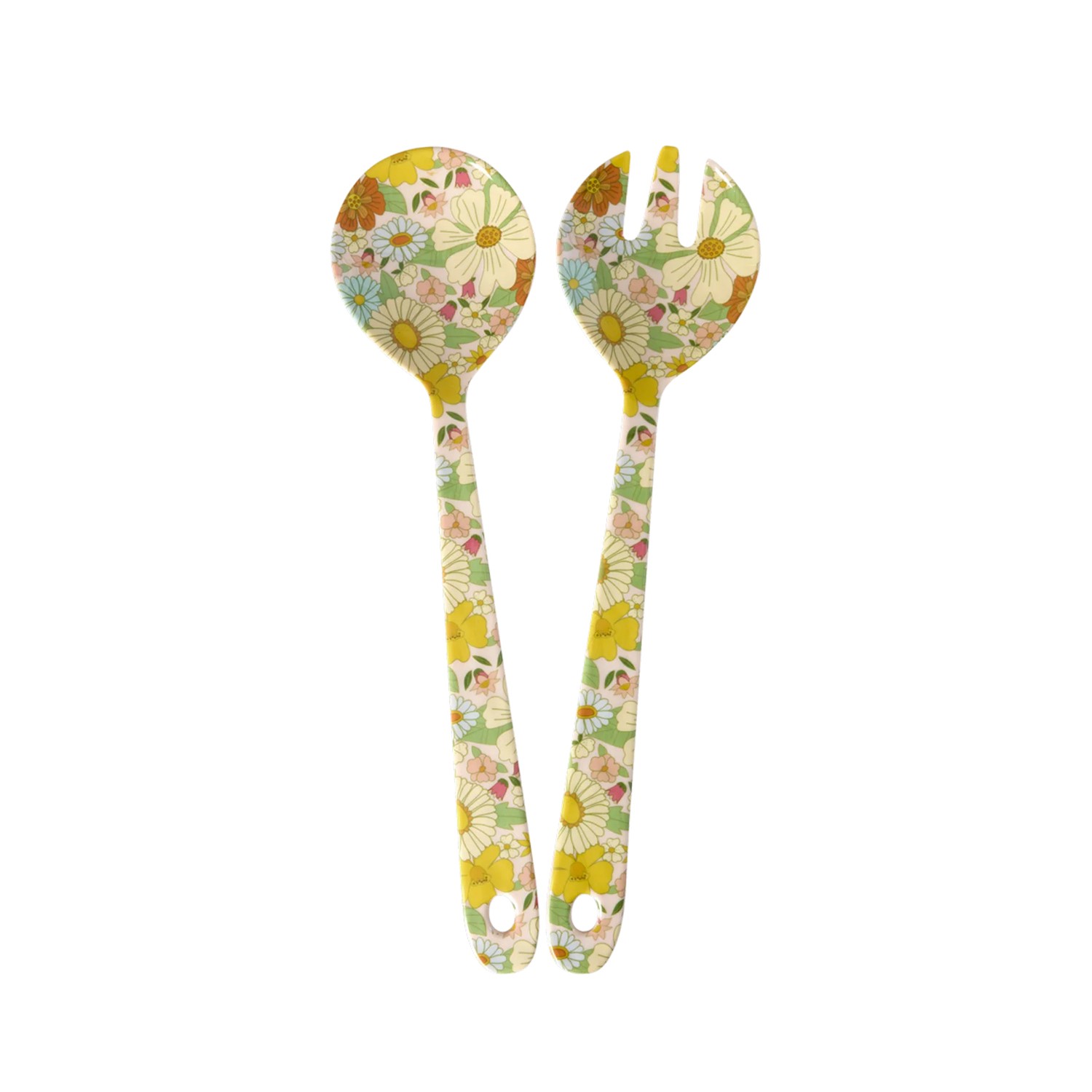 Dona un tocco vivace alla tua tavola con questo splendido set di posate per insalata in melamina con una graziosa fantasia floreale effetto retrò. Puoi utilizzarlo per ogni occasione come feste di compleanno, picnic o semplicemente per la tua insalata di tutti i giorni. Dai un'occhiata anche alle nostre insalatiere per creare l'abbinamento perfetto!