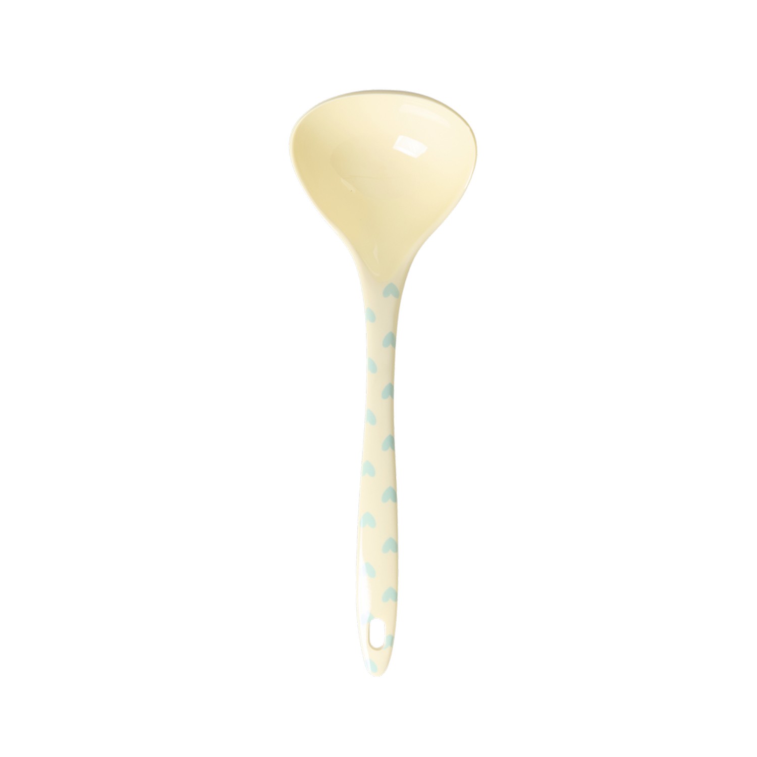 Servi deliziose zuppe per tutto l'inverno con questo splendido mestolo da zuppa in melamina con fantasia di graziosi cuoricini azzurri su sfondo color crema. Non adatto al microonde. Non lasciare nella pentola durante il tempo di cottura.