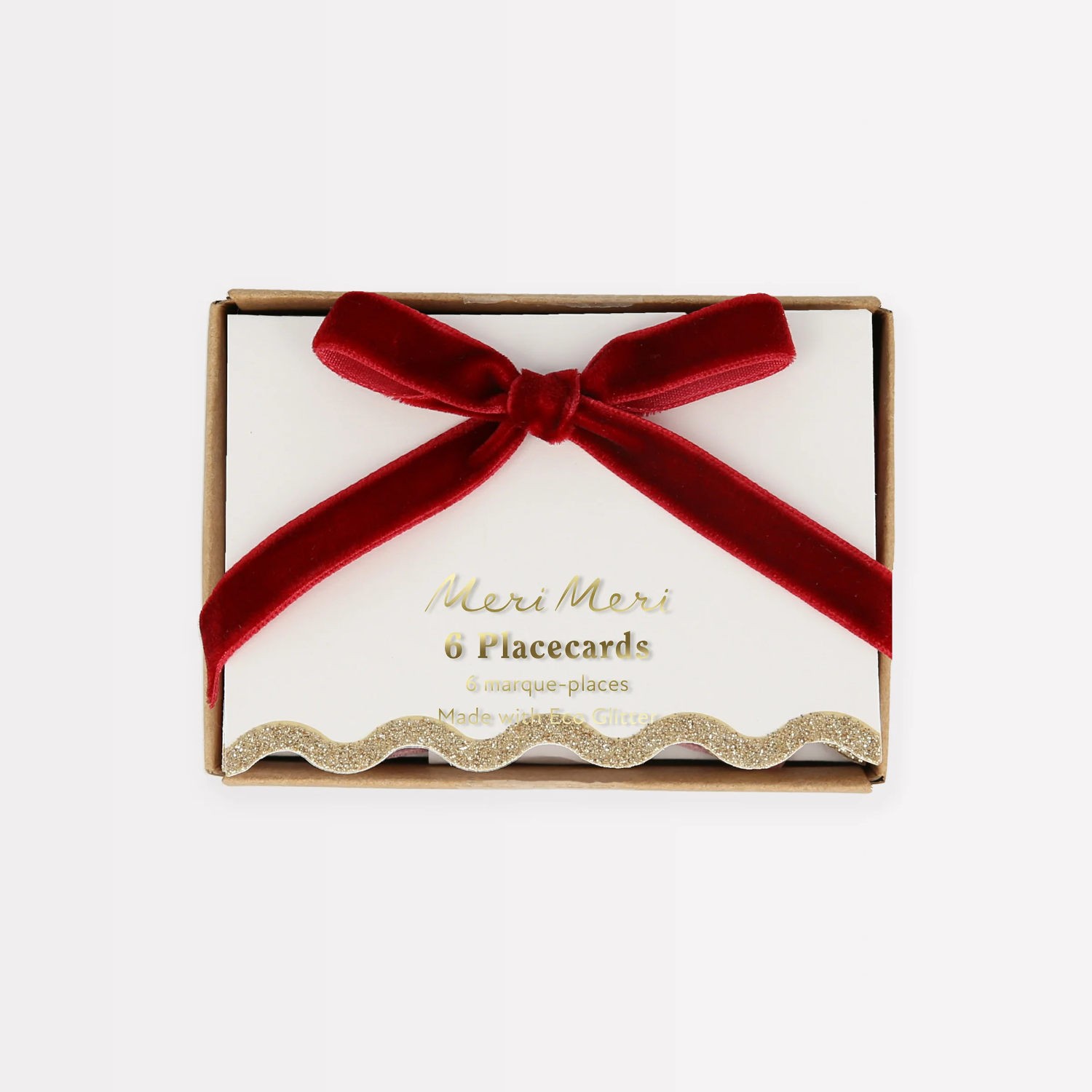 Per i tuoi pranzi e le tue cene natalizie non perderti questi elegantissimi segnaposti in cartoncino decorati con un grazioso fiocco in velluto colorato. Confezione da 6 in 6 colori diversi.