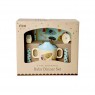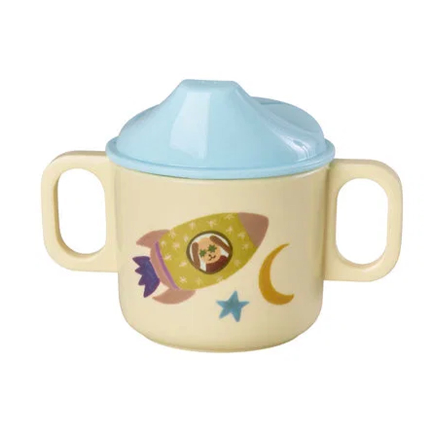 Accendi l'immaginazione dei tuoi piccoli con il set pappa di Rice, una collezione pensata per rendere ogni pasto un momento di gioco, creatività e scoperta. Caratterizzato da stampe colorate a tema cani nello spazio su sfondo celeste con stelline all over, questo set è l'alleato perfetto per incoraggiare l'autonomia dei bambini a tavola in modo allegro e sicuro. Include tutto il necessario per i primi pasti: tazza con manici e beccuccio, piatto a 4 scomparti e posate coordinate.