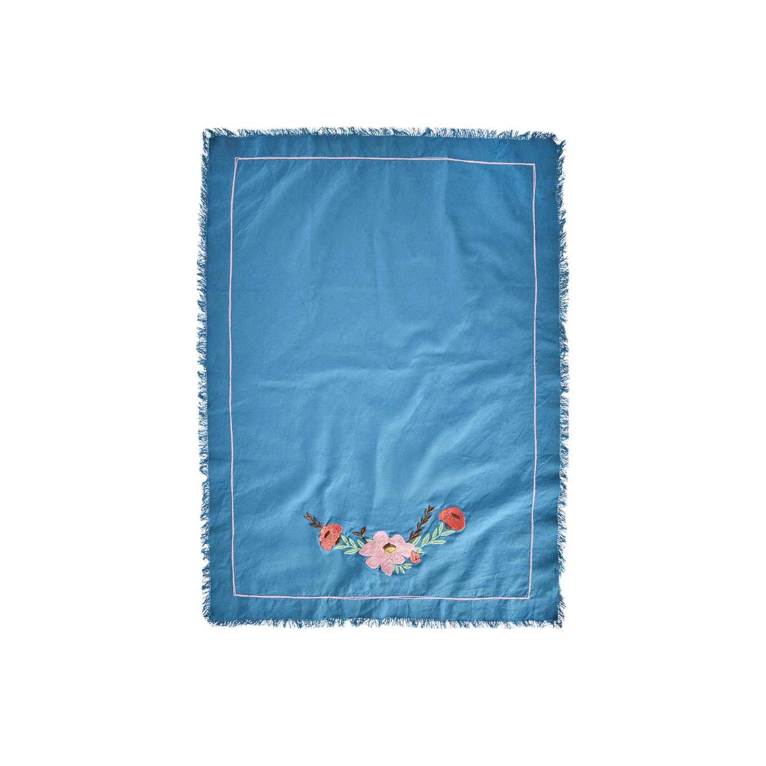 Strofinaccio da cucina blu con ricamo fiori