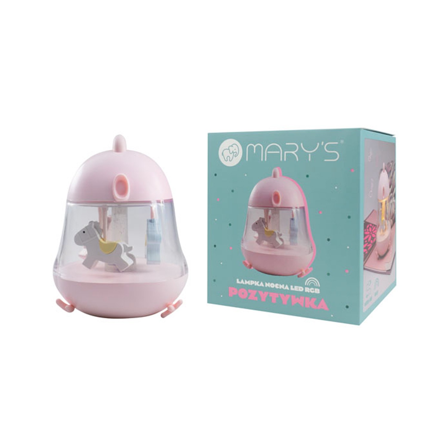 Questa luce notturna a LED RGB di MARY'S dal design a forma di giostra coi cavalli è un dispositivo unico che unisce le funzioni di una lampada da notte e di un carillon, creando l'atmosfera perfetta per rilassarsi e dormire. Grazie all'impiego della tecnologia LED, offre non solo un'illuminazione a risparmio energetico, ma anche la possibilità di scegliere diverse tonalità di luce, rendendola l'aggiunta perfetta a qualsiasi ambiente interno.