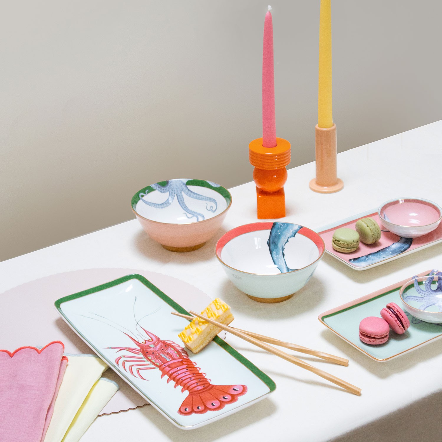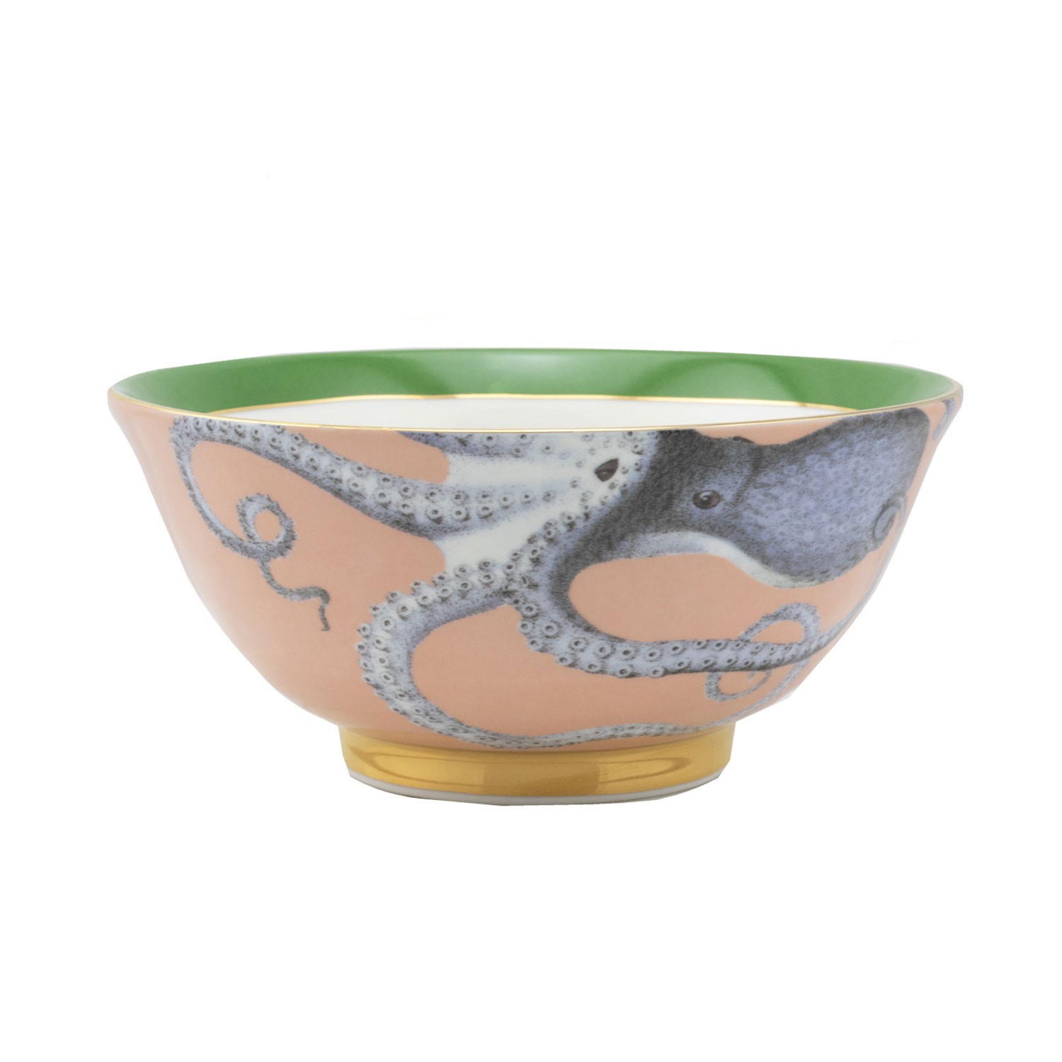 Questa ciotola firmata Yvonne Ellen in pregevole porcellana rosa pastello con fantasia piovra disegnata, finemente dorata sulla base e sui bordi, è perfetta per essere utilizzata come tazza per la colazione o come coppetta gelato o per mangiare il sushi grazie alle pratiche bacchette comprese nella confezione. Un’idea regalo davvero originale e versatile. Si raccomanda il lavaggio a mano.