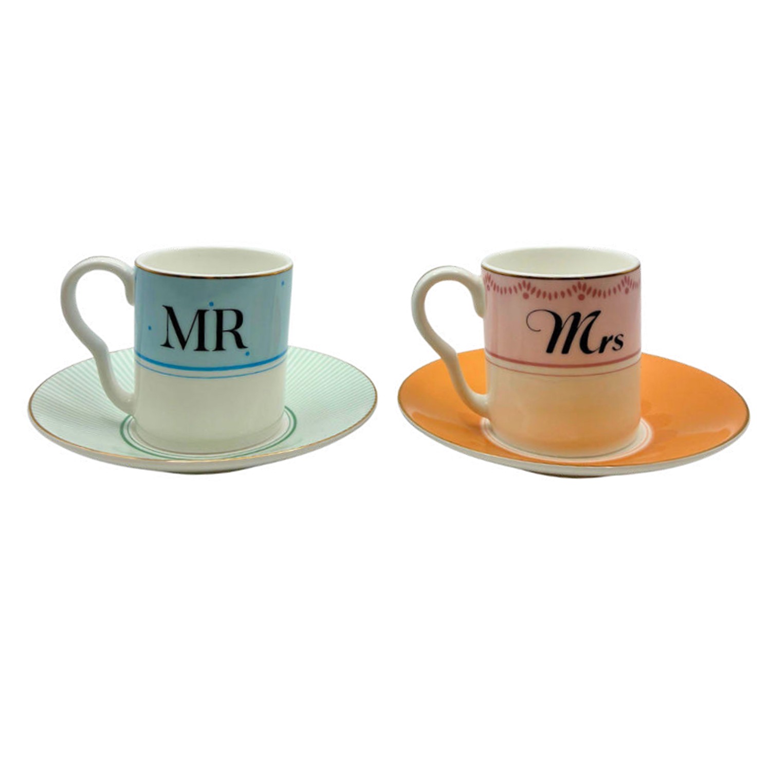 Set 2 tazzine da caffè in porcellana Mr & Mrs con piattino