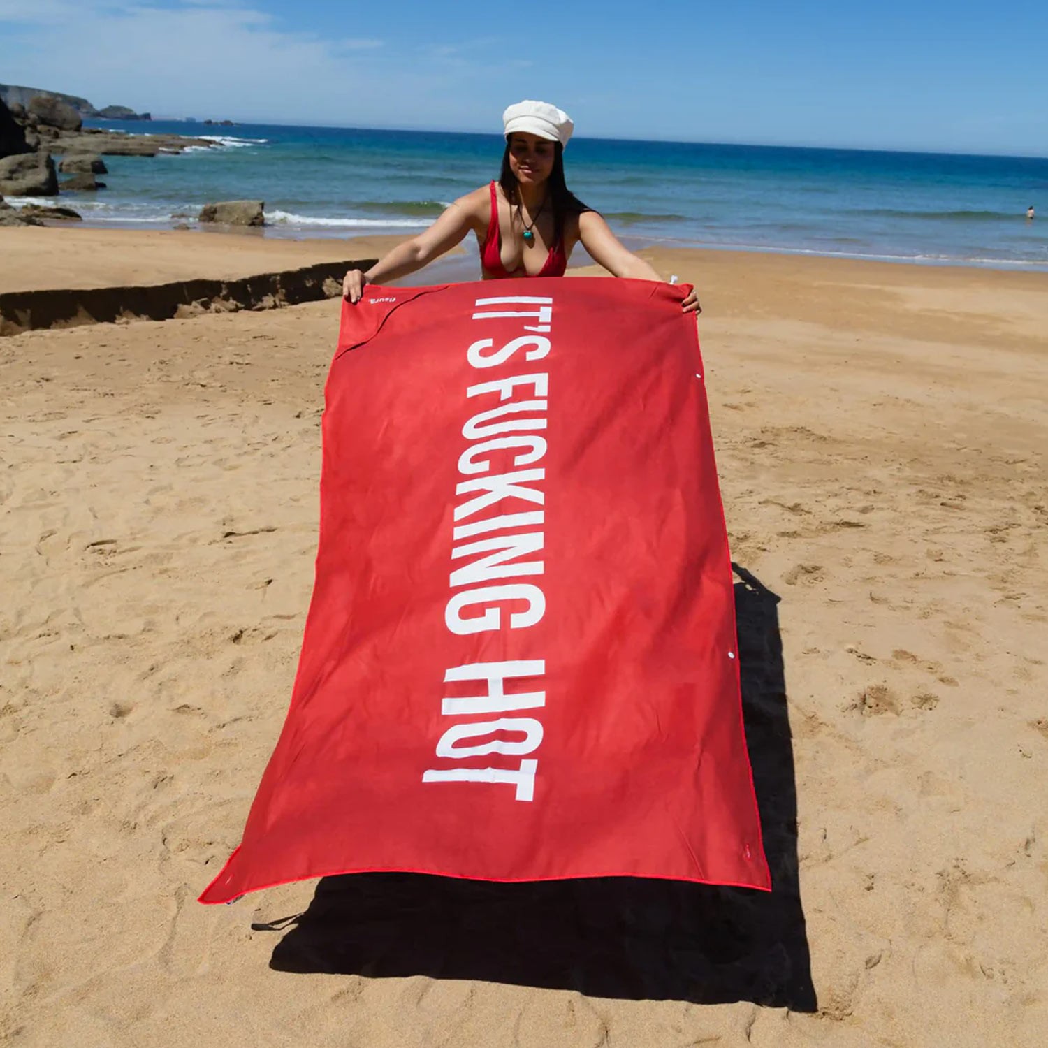 Con la scritta "It's Fucking Hot" su questo telo da spiaggia rosso, sarà chiaro che il caldo è insopportabile e l'unica cosa che puoi fare è restare in spiaggia a nuotare per ore. Essendo in microfibra, è un telo leggero, ad asciugatura rapida e anti-sabbia, così puoi goderti il sole senza che quella dannata sabbia ti si attacchi.