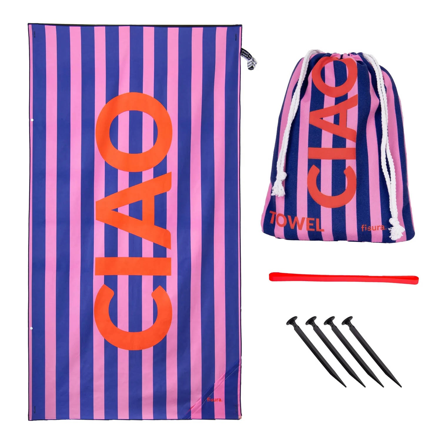 Telo mare in microfibra a righe "CIAO"