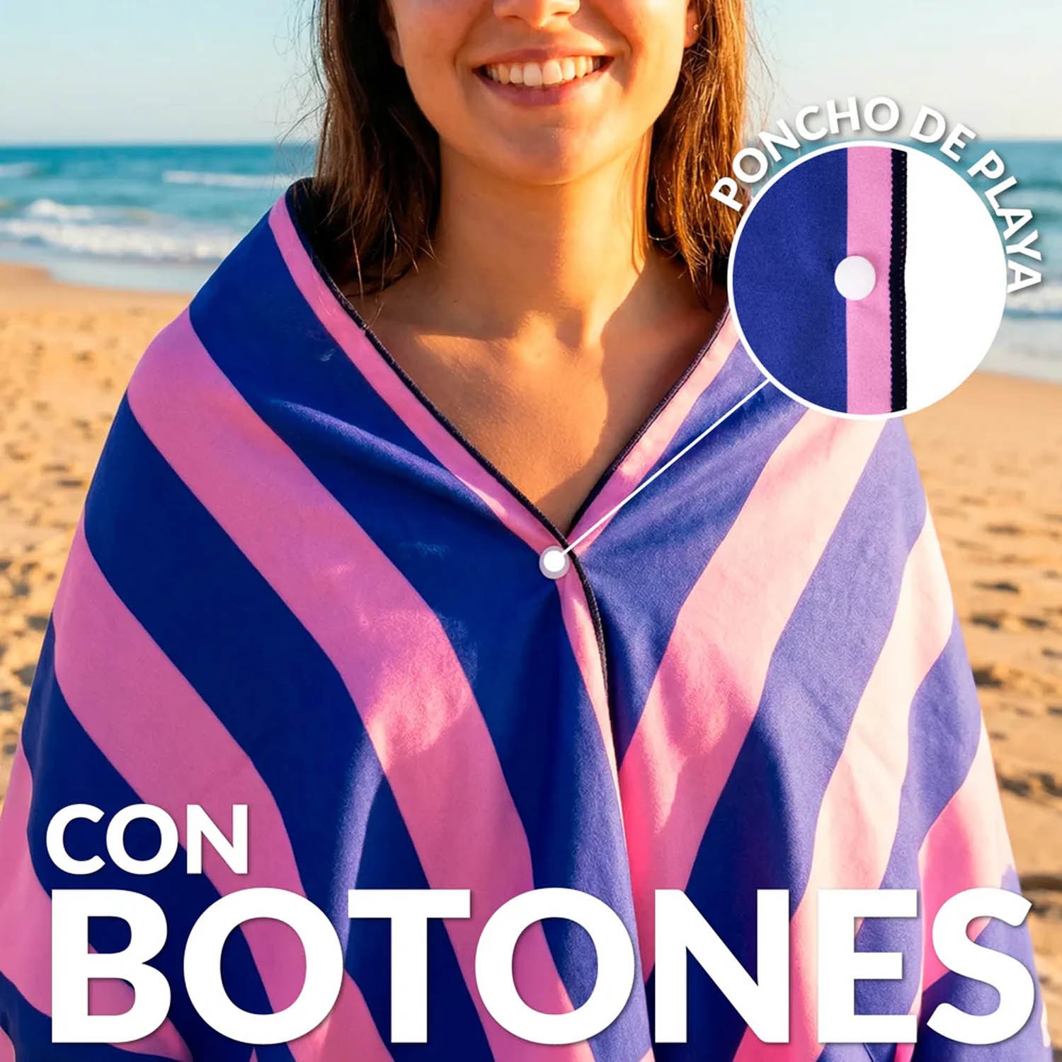 Se ami avvolgerti in un asciugamano dopo un tuffo rinfrescante, ora puoi farlo senza usare le mani! Grazie ai suoi due bottoni automatici, questo esclusivo telo mare si trasforma in un mantello che ti protegge mentre prendi il sole o ti godi il tuo drink preferito. E tutto a mani libere!