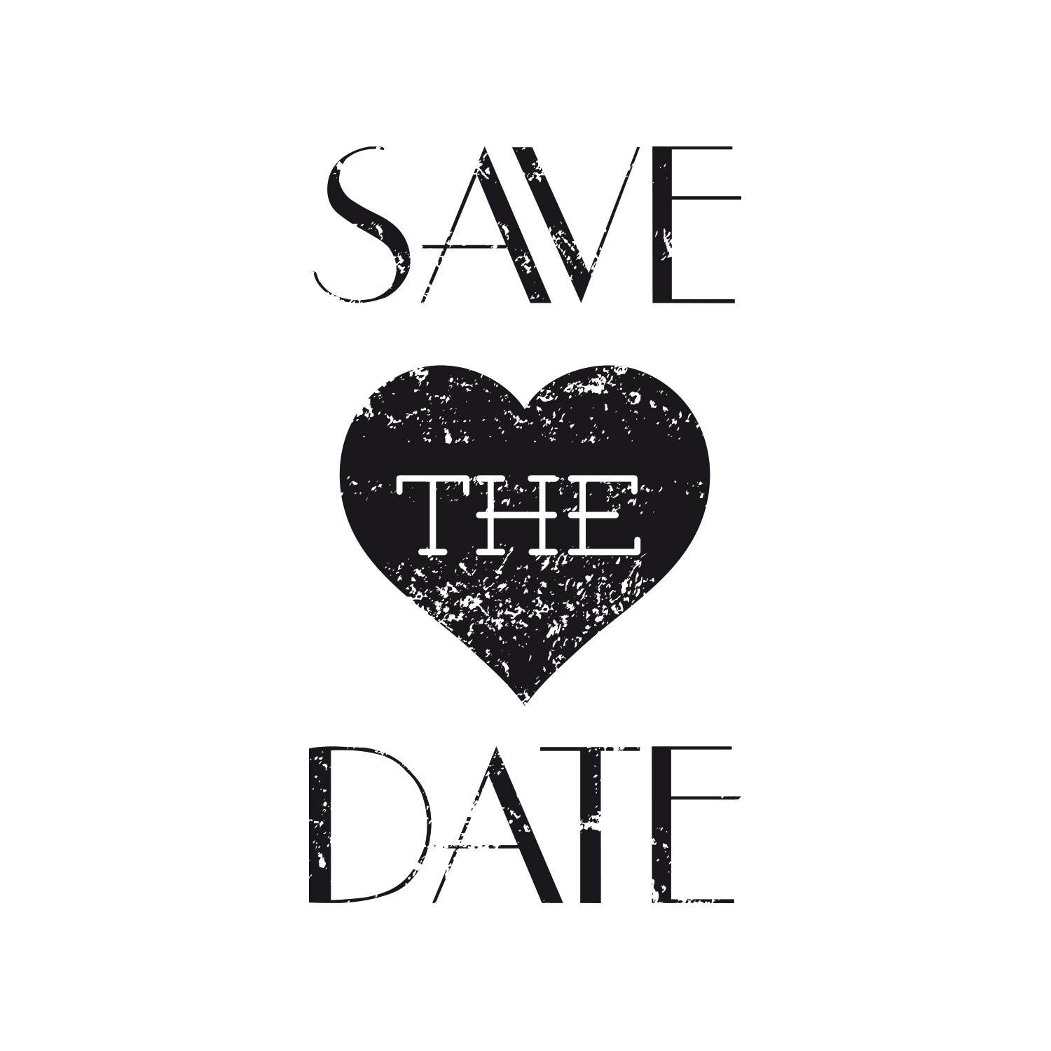 Timbro dalle sfumature vintage in bianco e nero con la scritta "Save the date" impreziosita da un cuore, ideale come regalo per la tua dolce metà o per un amico davvero speciale.