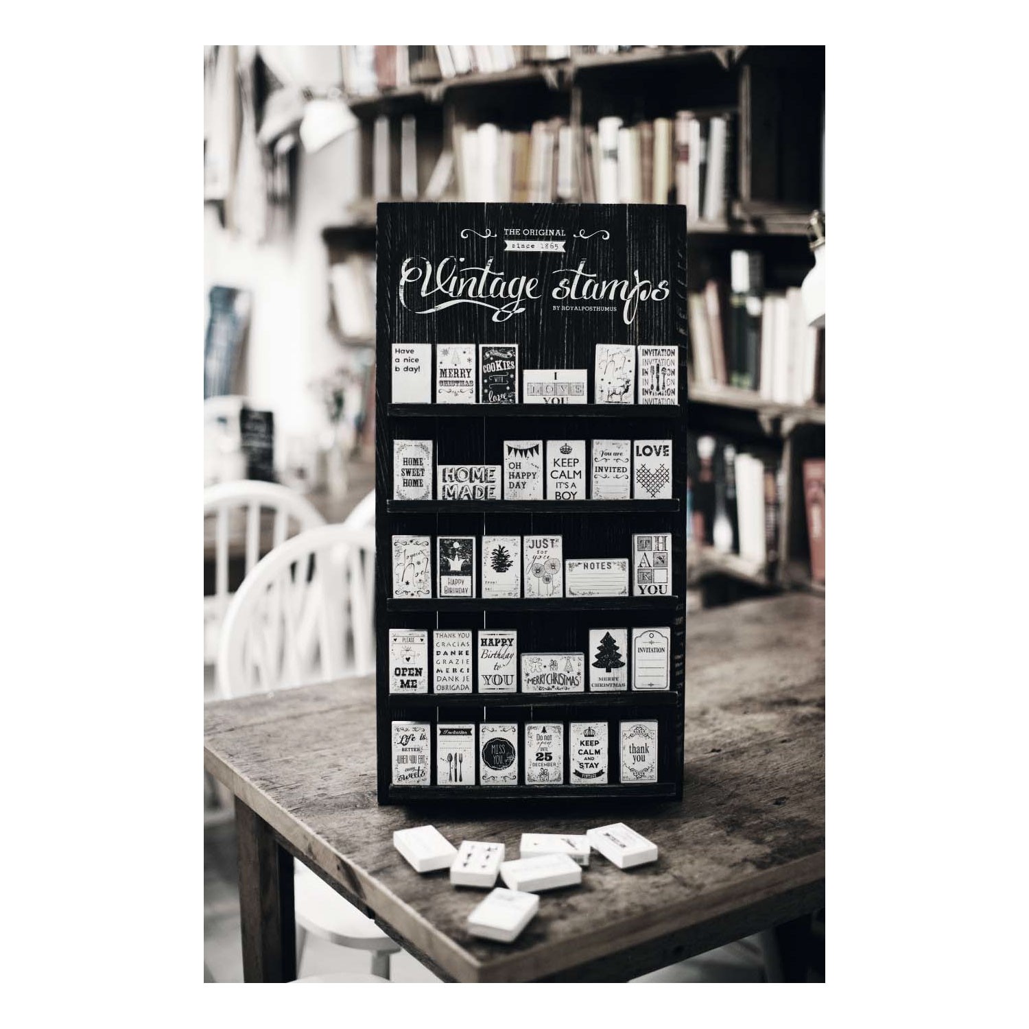 Il timbro di gomma montato sul legno misura circa cm 7x4x1.5.