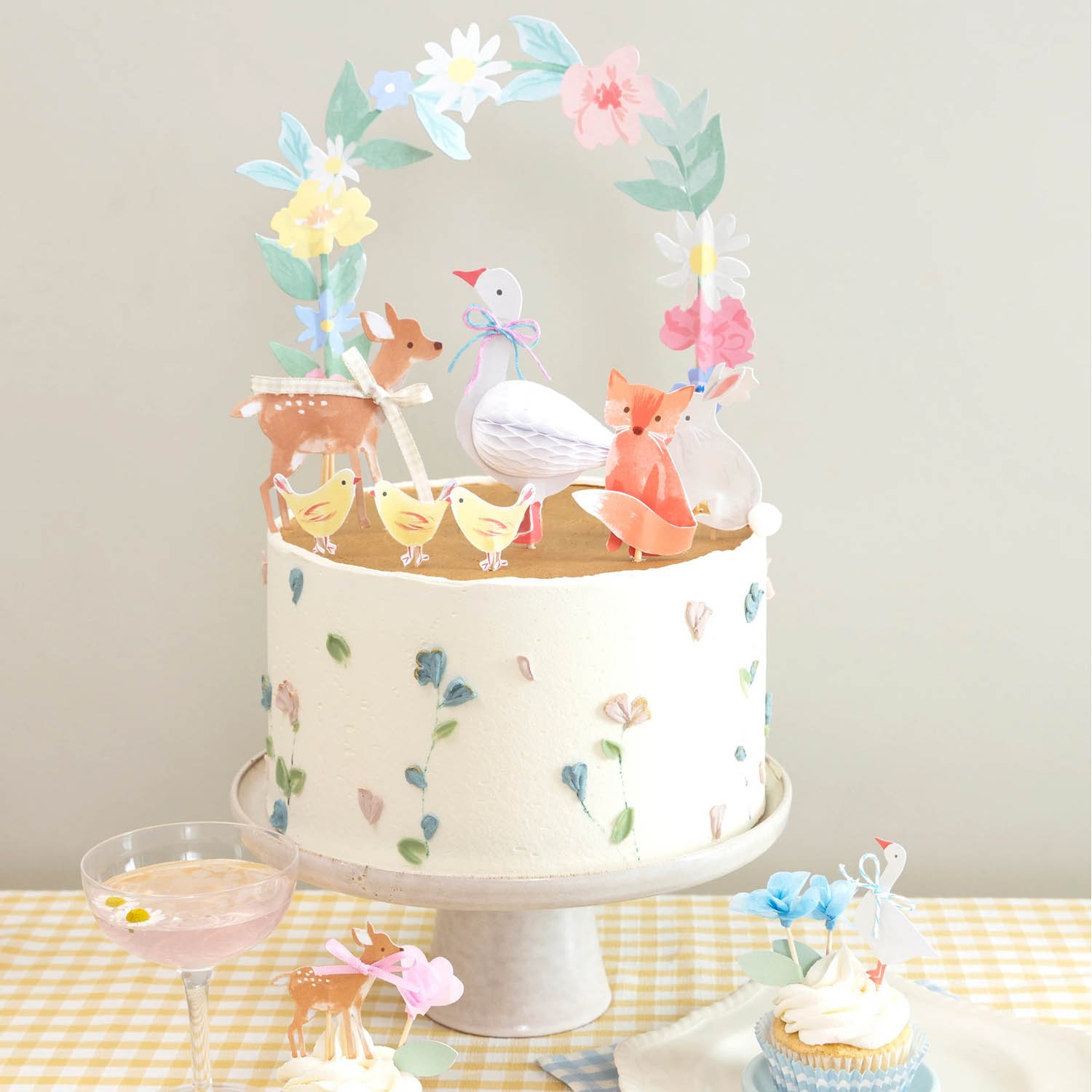Porta un tocco di magia fiabesca sulla tua torta di compleanno. La nostra collezione Little Animals si ispira ai libri per bambini vintage, all'animazione degli anni '40 e alle classiche carte da parati floreali, ed è ricca di dolcezza nostalgica e dettagli delicati. Questo set di adorabili decorazioni per torte, con abbellimenti accattivanti, rende la decorazione un gioco da ragazzi ed è perfetto per creare una torta meravigliosa per un baby shower o una festa di compleanno per bambini. Un set di 8 decorazioni per torte in carta, disponibili in 6 modelli diversi: un cerbiatto, un'oca, un coniglio con coniglietto, una volpe, dei pulcini e un arco floreale. La decorazione del cerbiatto è decorata con un fiocco in nastro a quadretti bianco e tortora. La decorazione dell'oca presenta un fiocco in filo blu scuro e rosa e dettagli a nido d'ape sulle ali, con nastro biadesivo incluso per mantenere il nido d'ape aperto. La decorazione del coniglio ha una graziosa codina con pon-pon bianco. Spiedini in bambù naturale per tutte le decorazioni, ad eccezione dei pulcini che hanno stuzzicadenti da cocktail in bambù naturale, per un facile inserimento nella torta. Semplice montaggio richiesto.