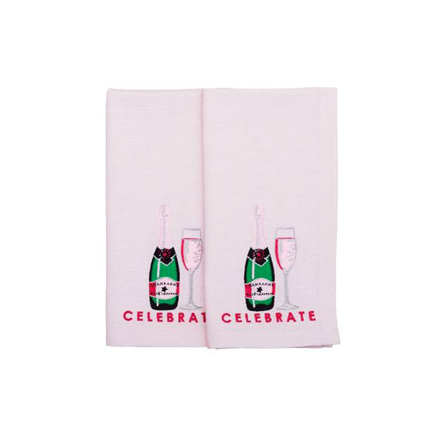 Per stupire tutti a tavola in occasioni importanti, decora la tua mise-en-place con questi tovaglioli di lusso, un misto di cotone e lino di colore rosa chiaro, abbelliti da ricami pregevoli a tema champagne con bottiglia e calice e dalla scritta CELEBRATE, che combinano il classico con il contemporaneo. Confezione da 2.