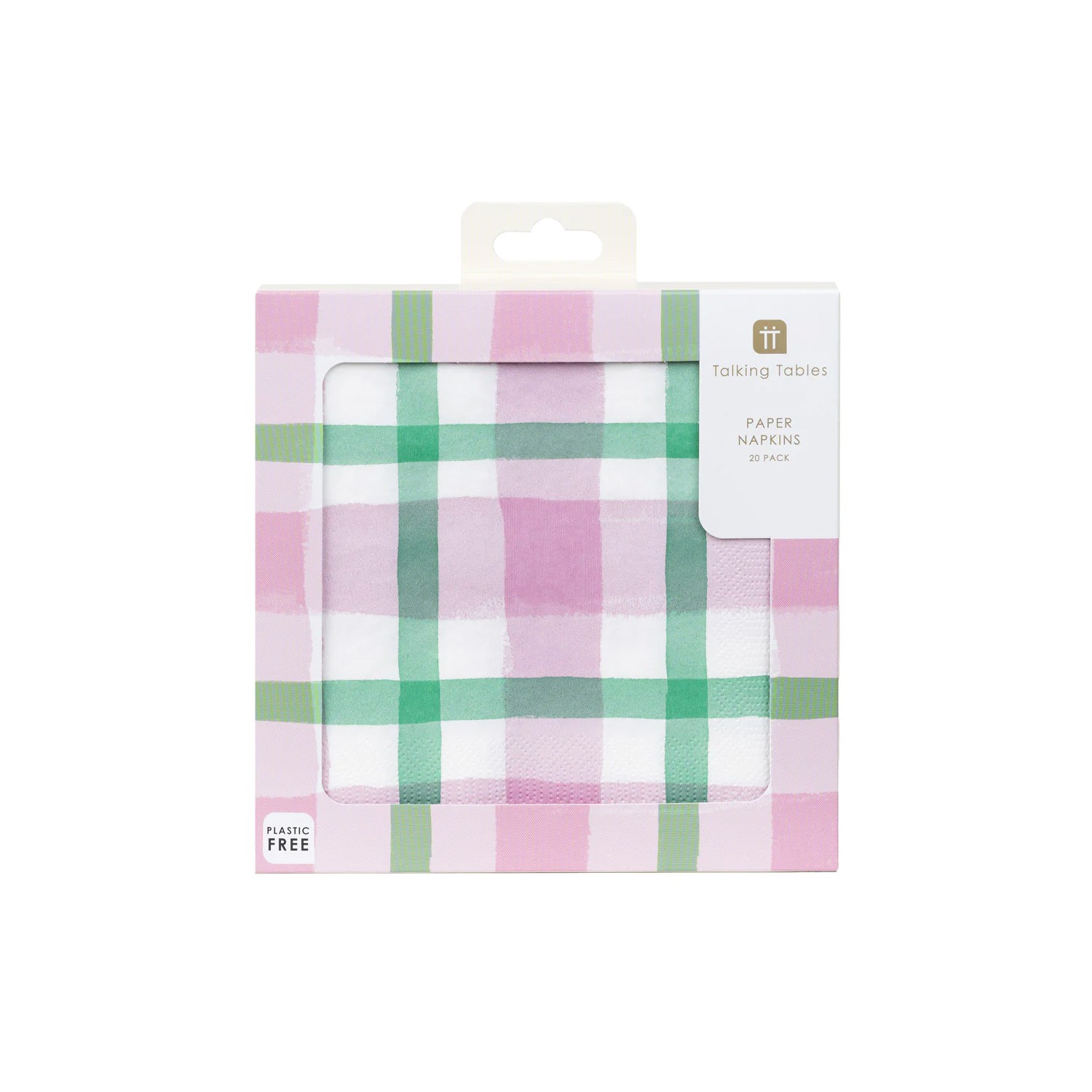 Caratterizzati da una simpatica fantasia tartan a righe e quadretti viola e verde, questi tovaglioli di carta sono gli accessori da tavola perfetti per una festa primaverile in terrazza o per un picnic all'aperto. Davvero utili per raccogliere briciole di torta o asciugare le bevande versate dagli ospiti sbadati.