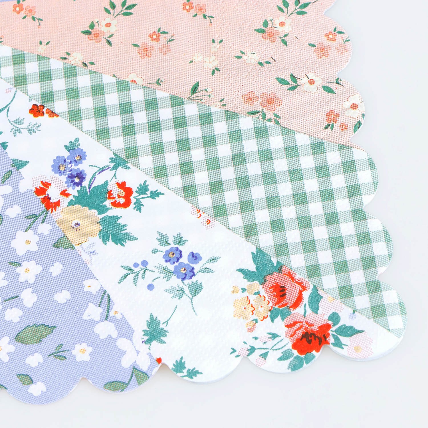 Porta il fascino del floreale sulla tua tavola con questi grandi tovaglioli di carta. Caratterizzati da un delizioso mix di tonalità blu, verdi, pesca e rosa con delicati dettagli floreali e a quadretti, ogni tovagliolo è rifinito con un grazioso bordo smerlato. Perfetti da abbinare ad altre stoviglie o da indossare da soli per aggiungere un tocco di stile, sono ideali per baby shower, addii al nubilato, compleanni e qualsiasi festa primaverile o estiva che richieda un tocco di bellezza rustica. Realizzati in carta a 3 veli, questi grandi tovaglioli di carta sono pratici e decorativi. bordo smerlato.