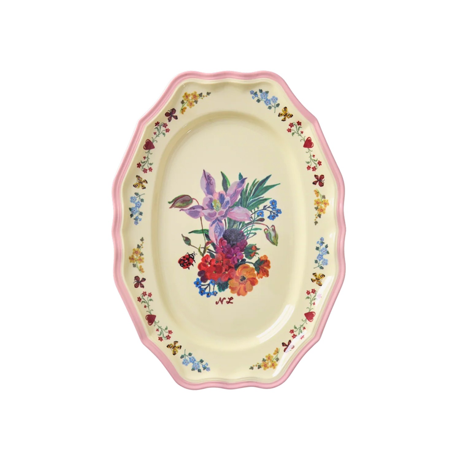 Immergiti in un'esplosione di colori e natura con questo incantevole piccolo vassoio in melamina, frutto della collaborazione tra Rice e la celebre artista Nathalie Lete. Il vassoio è un vero e proprio quadro, con un vaso di fiori lussureggianti e colorati, disegnato al centro con la tipica sensibilità di Nathalie Lete Realizzato in melamina, questo piatto da portata è leggero, resistente agli urti e perfetto per l'uso quotidiano. Ideale per servire aperitivi, stuzzichini, dolci o per portare in tavola le tue creazioni culinarie con stile. La forma ovale con bordo smerlato rosa chiaro conferisce al vassoio un tocco di raffinatezza e originalità. Un oggetto unico, nato dall'incontro tra il design colorato e funzionale di Rice e l'arte onirica e ricca di dettagli di Nathalie Lete. Formato large, disponibile anche nella versione small della stessa linea.
