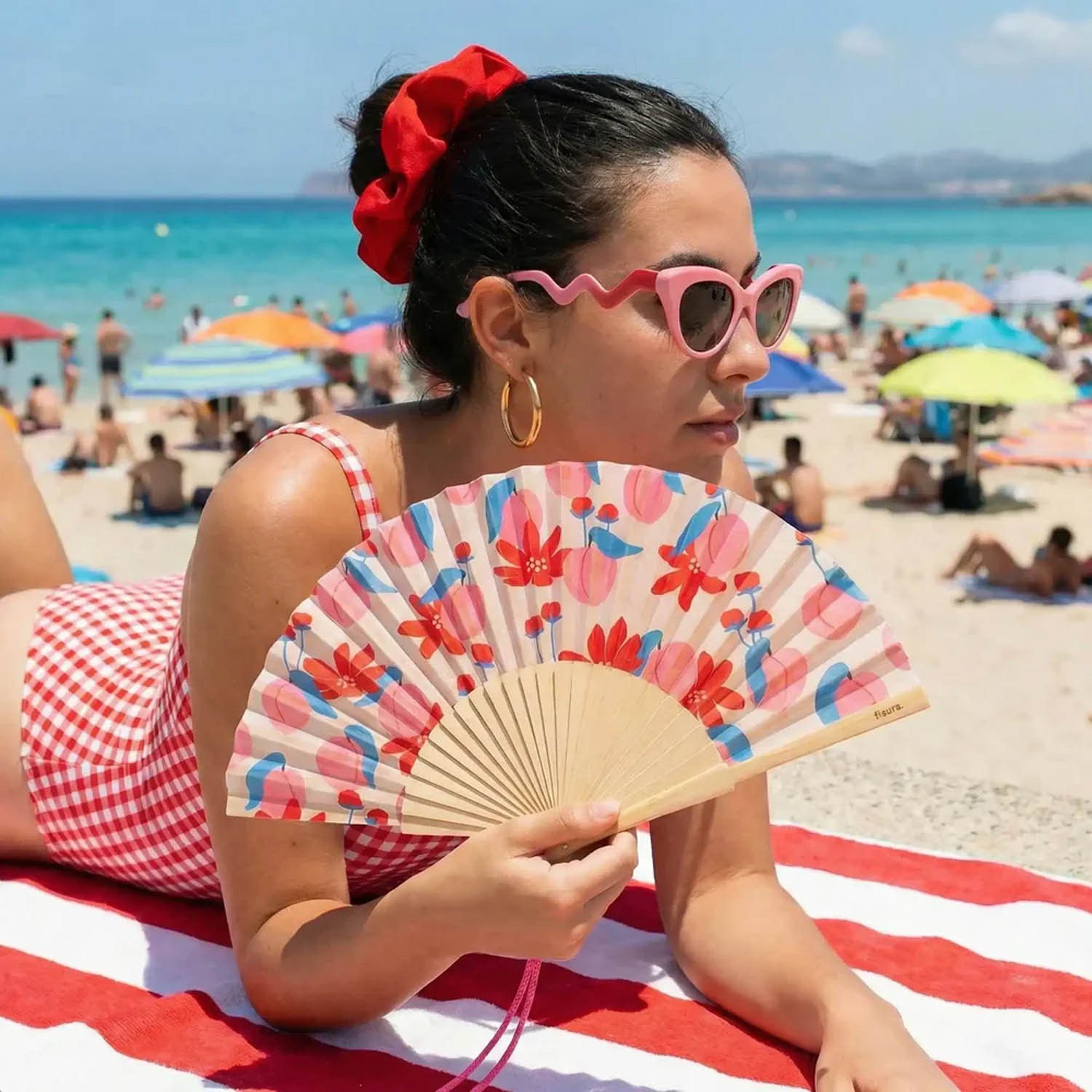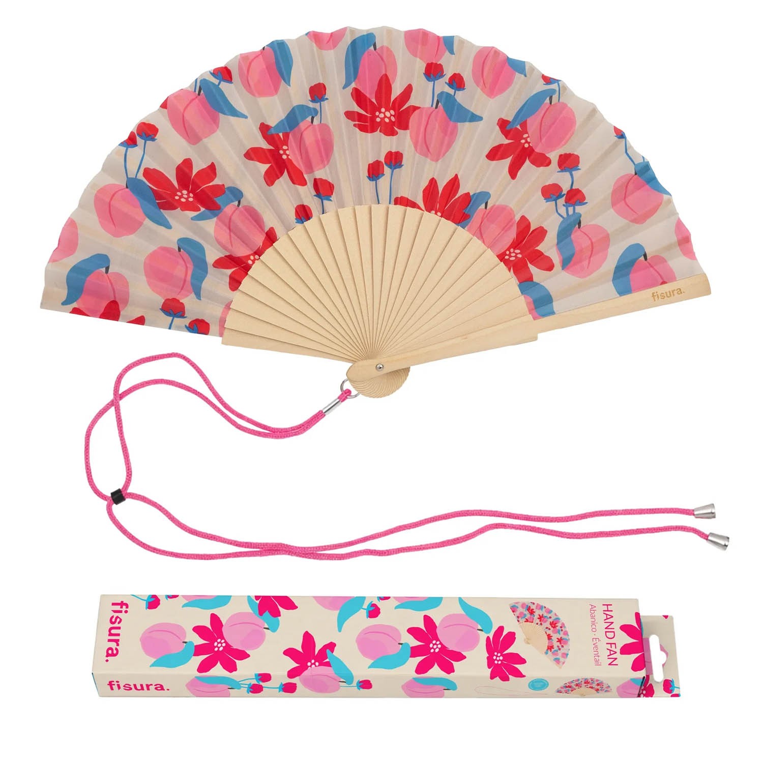 Questo grazioso ventaglio con stampa floreale rosa e rossa è perfetto per aggiungere un tocco di colore ed eleganza ai tuoi outfit estivi.