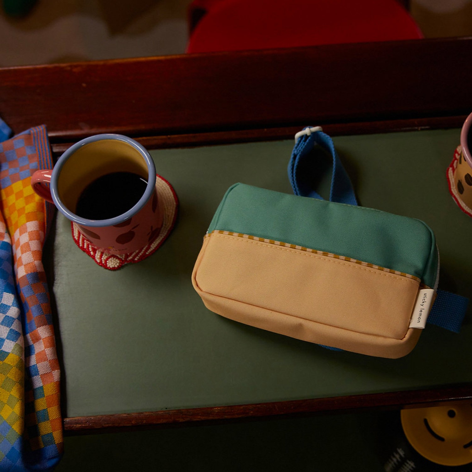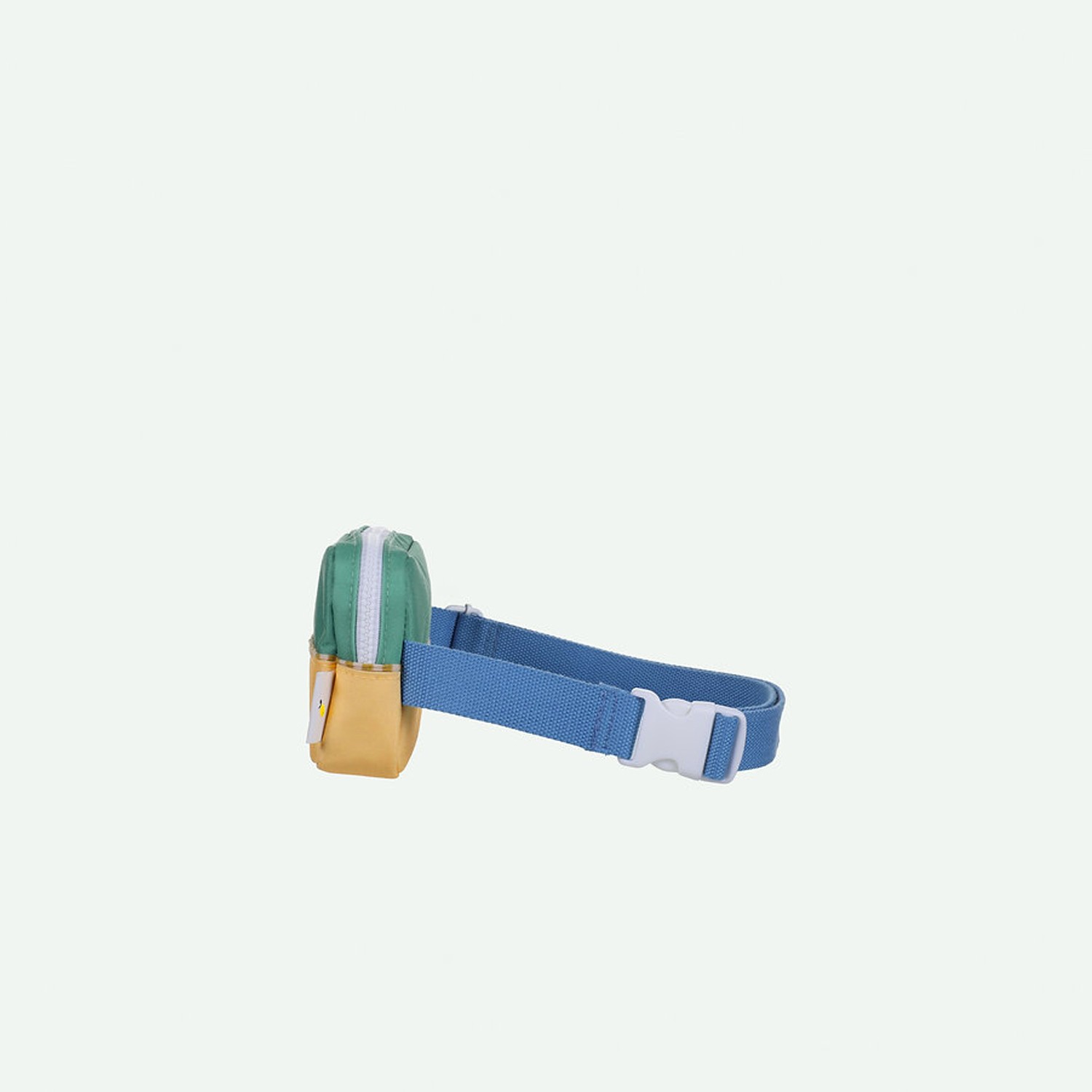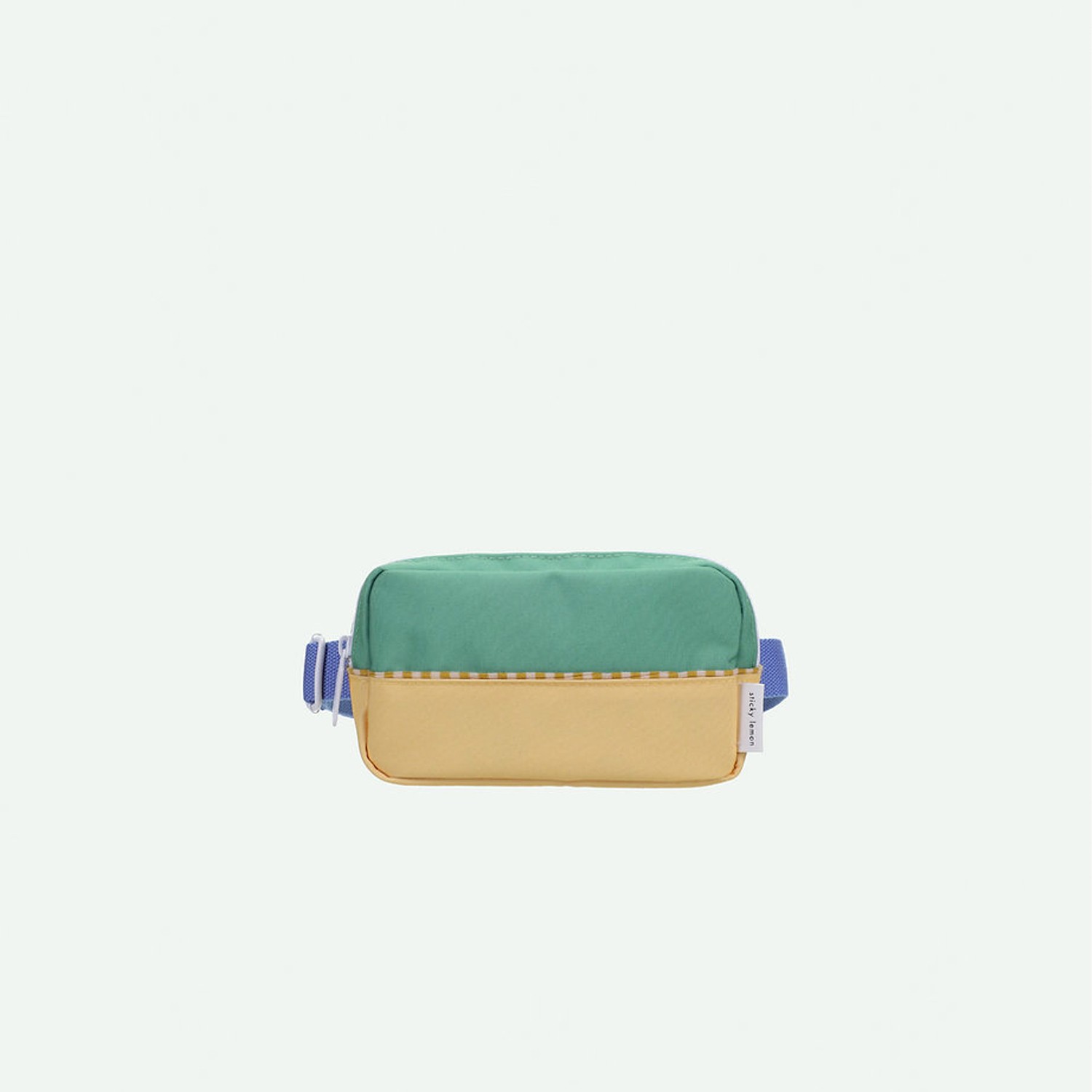 Tieni i tuoi accessori sportivi a portata di mano in questo marsupio bicolor, verde acqua e giallo ocra, realizzato con bottiglie in PET riciclate, dotato di vano interno e di tasca frontale con cinturino azzurro regolabile, che lo rende perfetto e pratico da utilizzare anche a tracolla. Viene fornito con una fodera interna impermeabile bianca con fantasia a tema marino e con cerniere YKK di alta qualità assieme ad una comoda targhetta dove inserire il proprio nome.