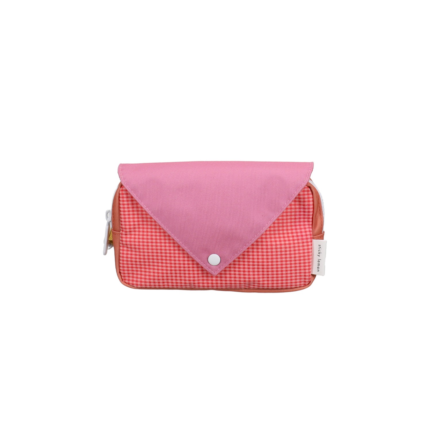 Il marsupio Sticky Lemon è l'accessorio must-have per chi ama muoversi in libertà senza rinunciare a un look iconico e colorato. Perfetto per i bambini che amano le avventure e per gli adulti che cercano un dettaglio pop e funzionale, questo modello unisce la dolcezza del rosa oleandro al fascino rétro della texture a quadretti. Il frontale è impreziosito dall'iconica patta a punta in rosa vivace, che sormonta un corpo a quadretti rossi. Un contrasto cromatico che cattura subito lo sguardo.