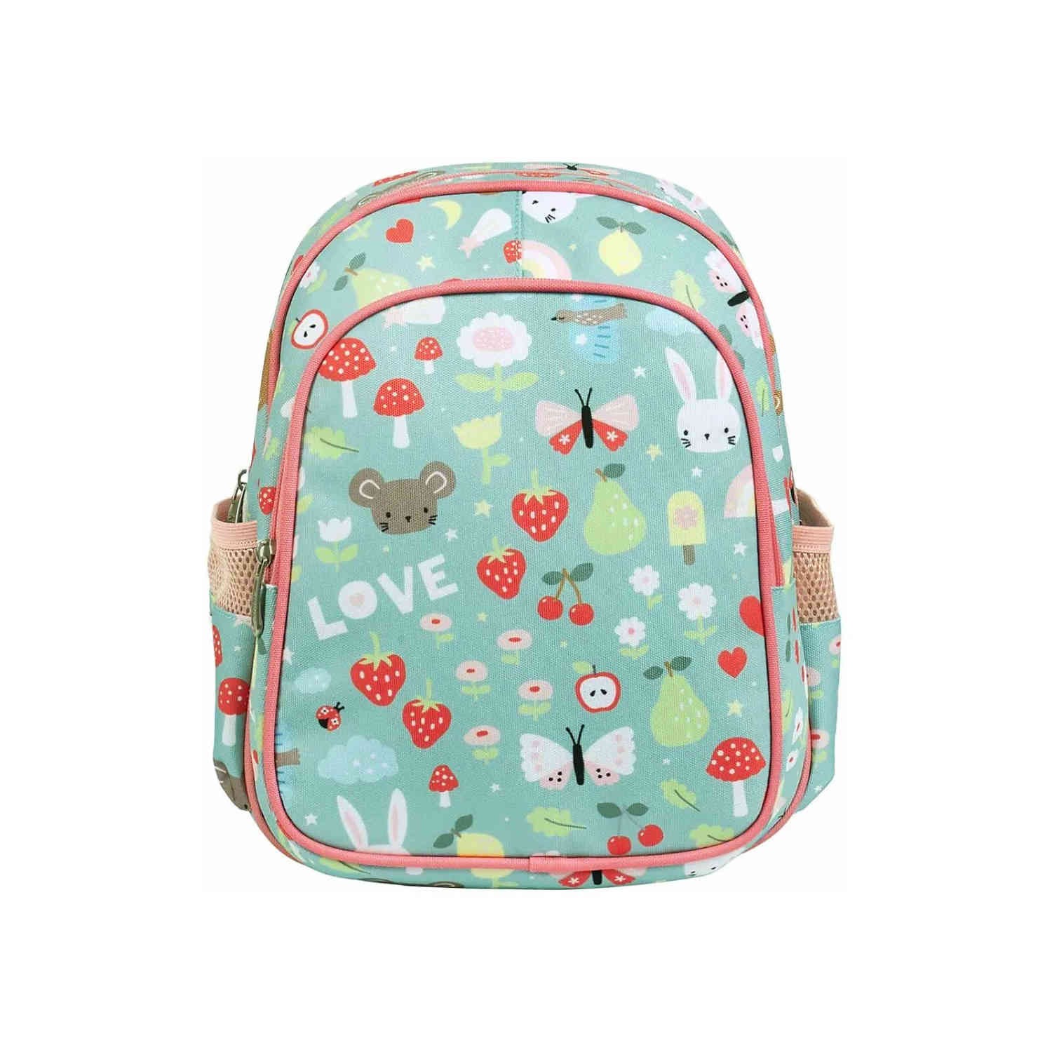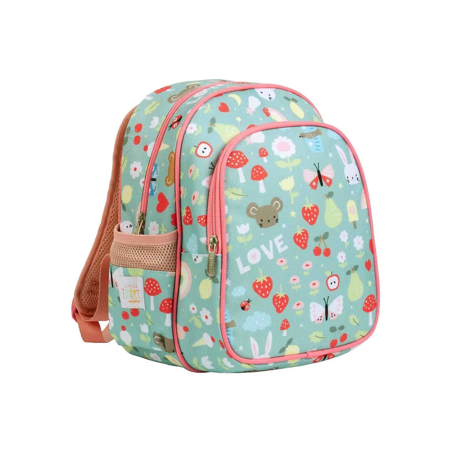 Per il tempo libero e i momenti fuori casa dei più piccini, questo zainetto color tiffany con graziosi disegnini è davvero perfetto!