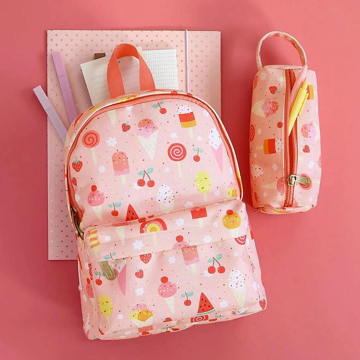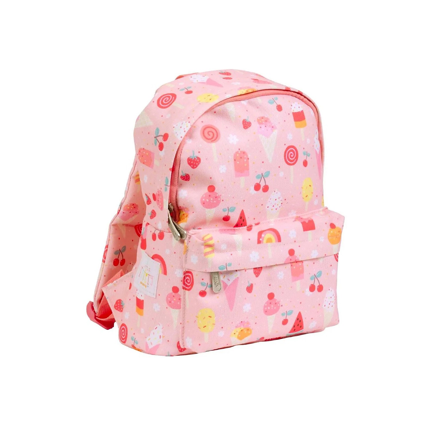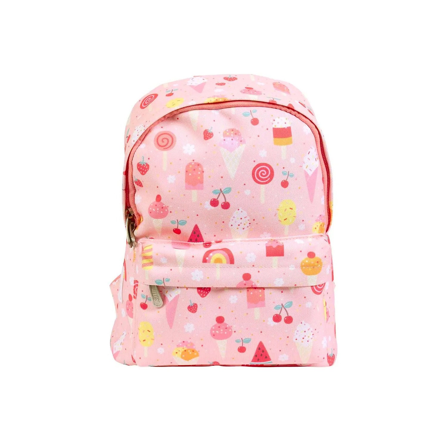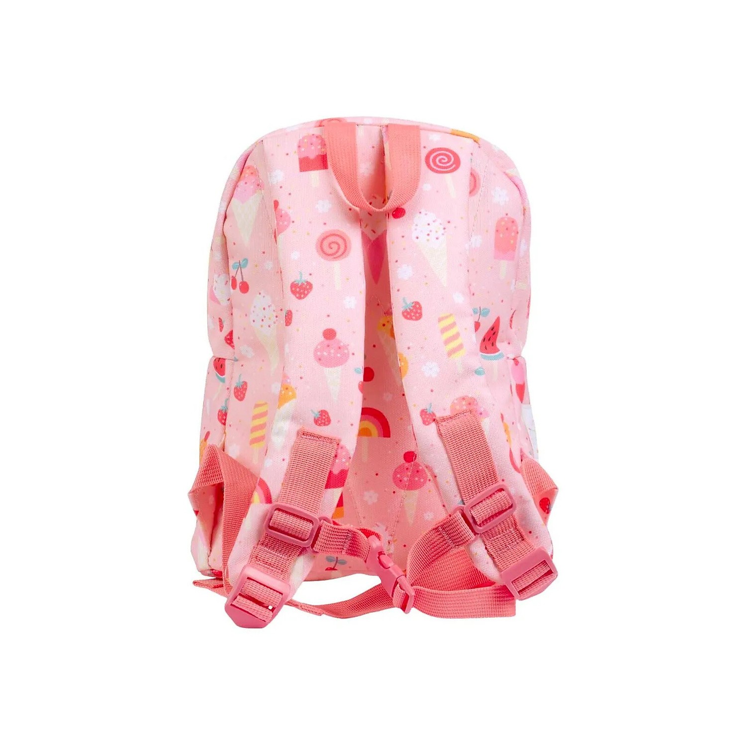 Questo zainetto di colore rosa con graziosa fantasia a tema gelati, è pensato per i bimbi più piccoli; è uno zaino leggero e di dimensioni contenute, ma resistente e sufficientemente capiente per tutto il necessario alle avventure fuori casa del tuo bambino: il pranzo a scuola e lo spuntino, il pigiamino e spazzolino da denti per un pigiama party, colori e giocattoli per un pomeriggio con gli amichetti. È diviso in due scompartimenti per organizzare al meglio il contenuto: un comparto principale ed una tasca frontale. Pannello schiena in materiale resistente e traspirante, tutto davvero leggero e comodo. Chiusura a zip. Pronti per partire?