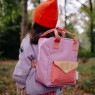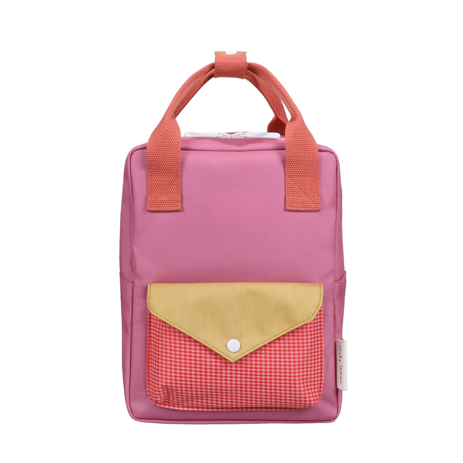 Questo zainetto bimbo by Sticky Lemon è l'accessorio perfetto per chi non vuole passare inosservato. Con il suo inconfondibile stile color-block, questa variante rosa oleandro combina tonalità pastello e accenti vivaci in un design audace e contemporaneo. Ideale per l'asilo, la scuola o le gite fuori porta, unisce un’estetica ricercata a una funzionalità senza compromessi. La palette cromatica sofisticata incontra la texture iconica della tasca frontale a quadretti rossi e bianchi, chiusa da un pratico bottone a pressione. Nonostante le dimensioni compatte, l'interno è studiato nei minimi dettagli. Dispone di un elastico portabottiglie per mantenere la borraccia in posizione verticale ed evitare perdite, oltre a una tasca posteriore a tutta larghezza con chiusura in velcro per libri o disegni. La fodera non è solo funzionale ma sorprendente: è completamente impermeabile e decorata con un esclusivo pattern disegnato a mano, rendendo lo zaino bellissimo anche all'interno.