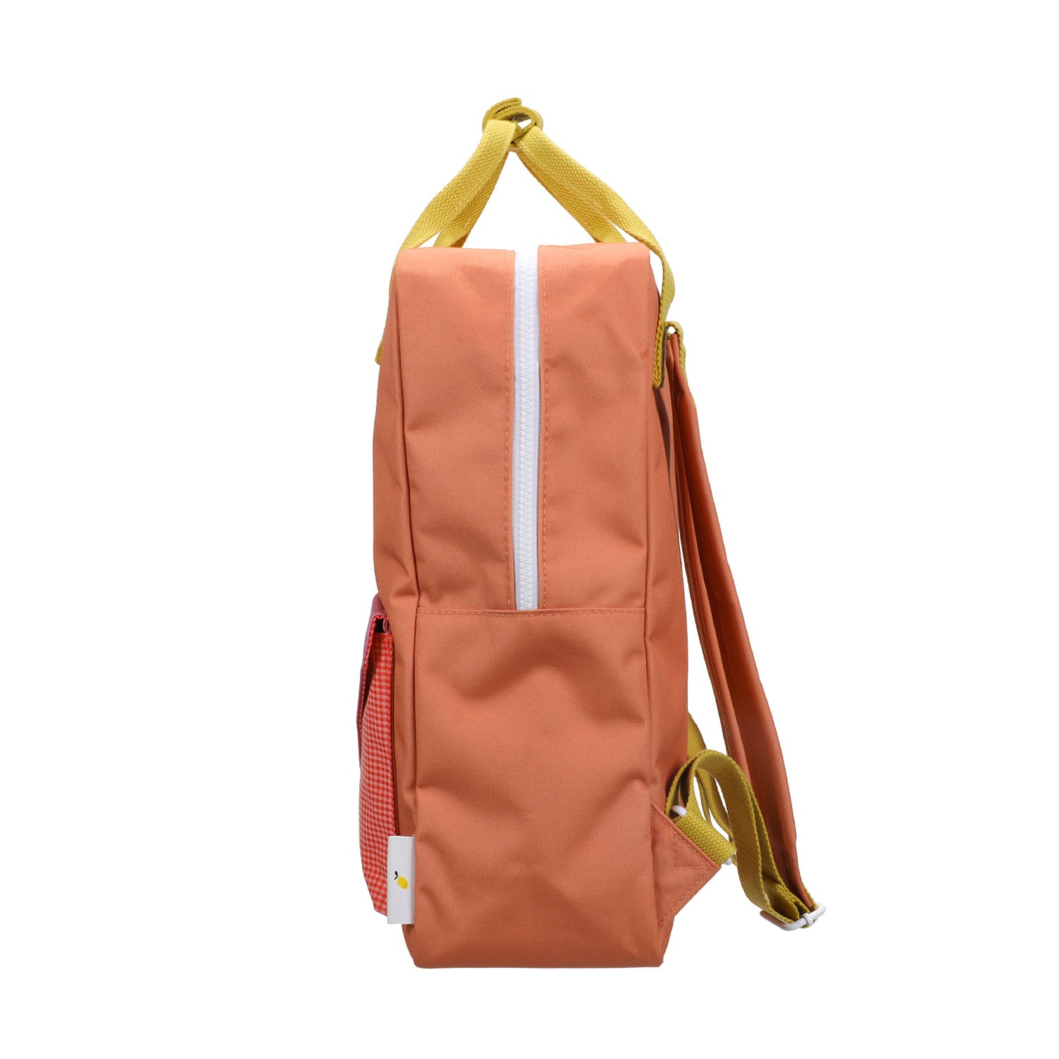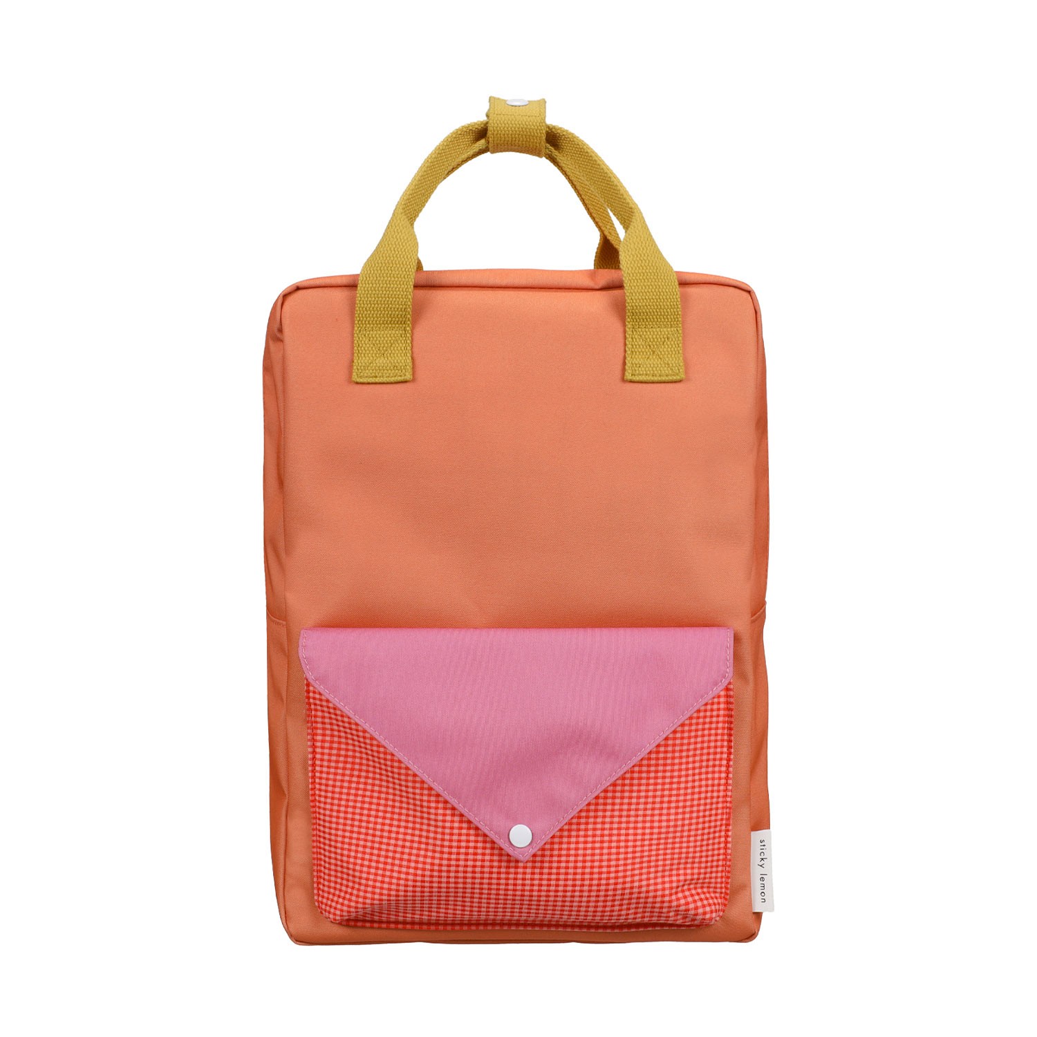 Zaino in materiale riciclato arancio corallo con patta a quadretti