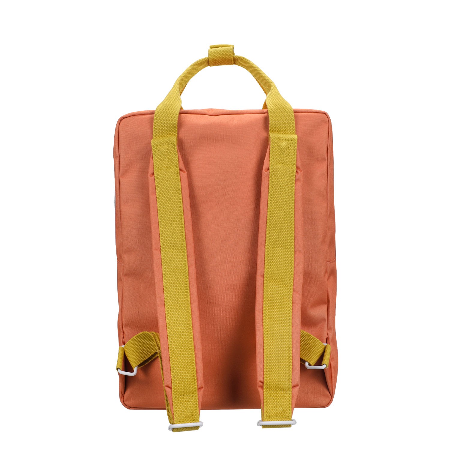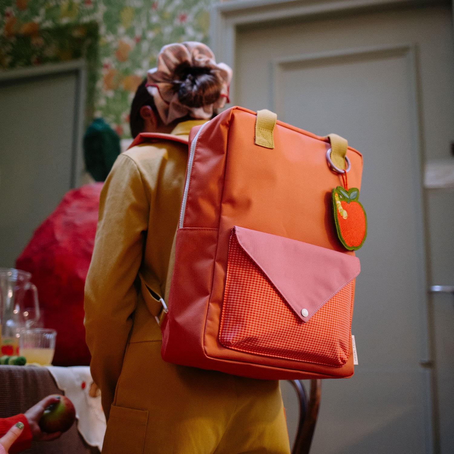 Caratterizzato da una vibrante tonalità di arancio caldo e avvolgente, questo zaino è il compagno ideale per la scuola primaria, l'ufficio o i viaggi del weekend. Il suo design strutturato e i contrasti cromatici audaci lo rendono un vero oggetto di culto per gli amanti del design color-block. L'iconica tasca frontale presenta una patta rosa vivace che protegge un comparto a quadretti. Un dettaglio funzionale che aggiunge un tocco rétro irresistibile.