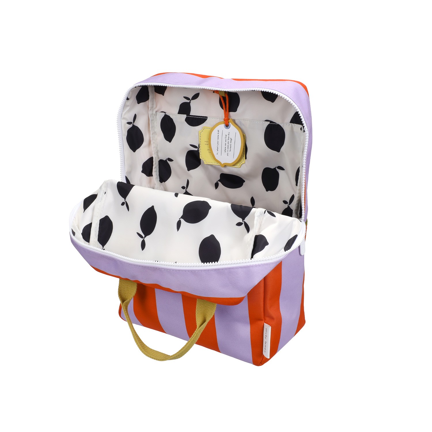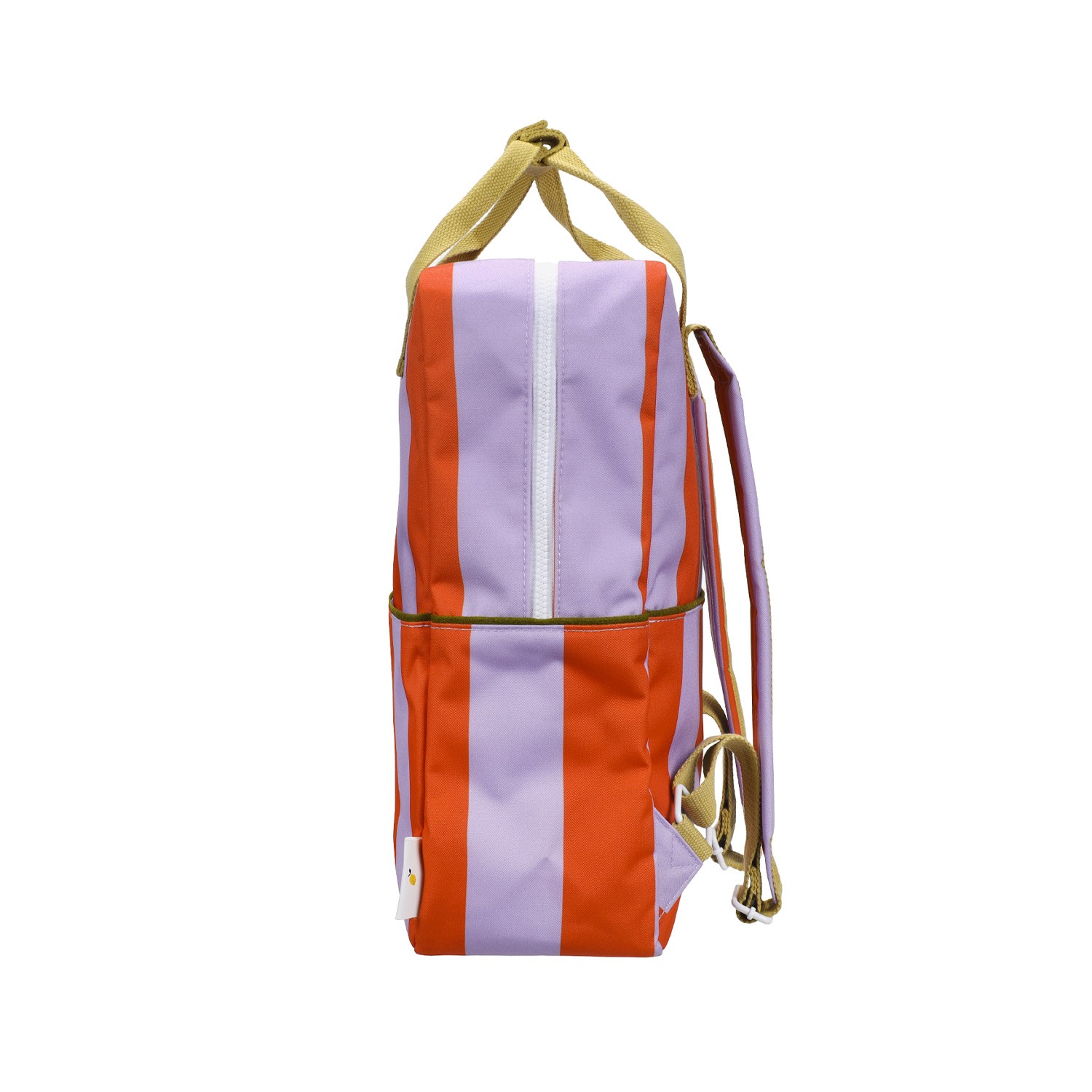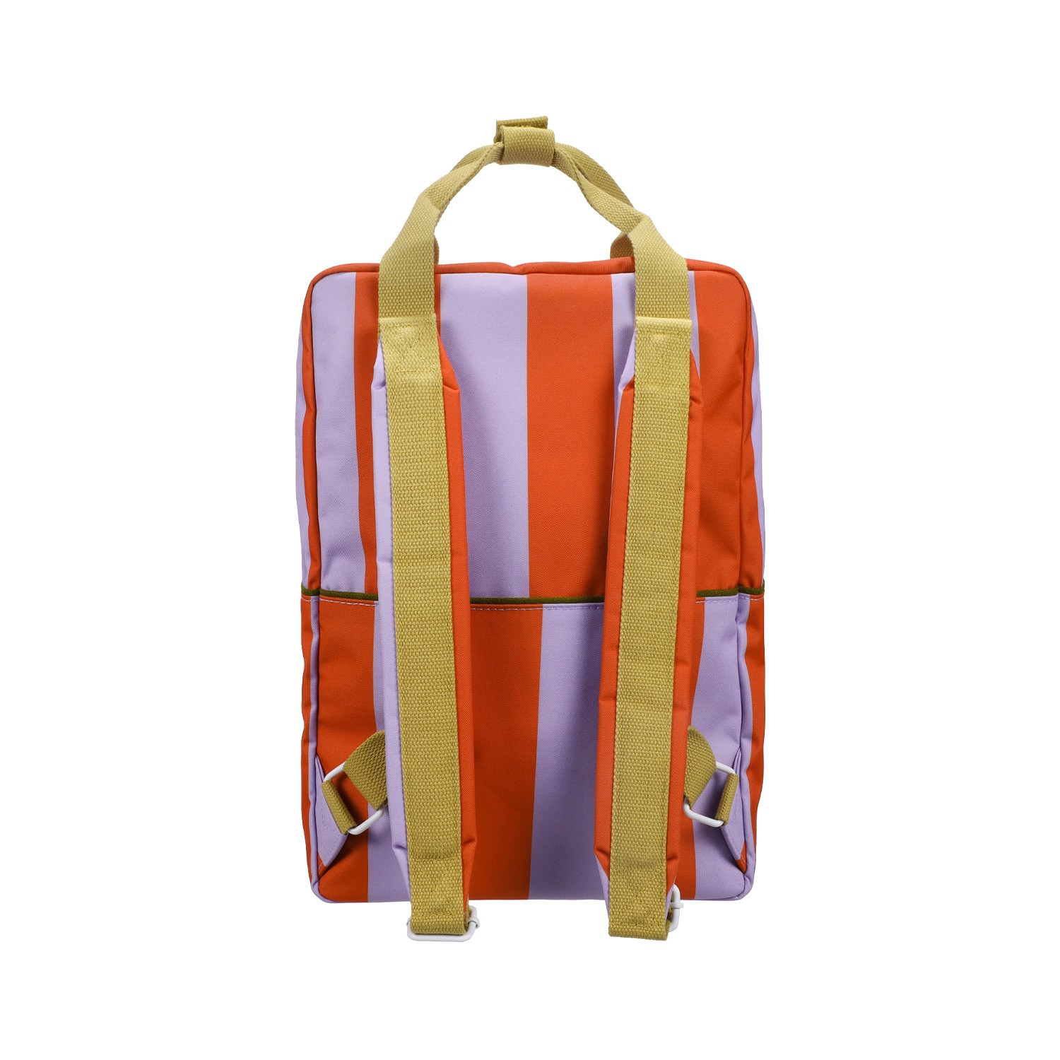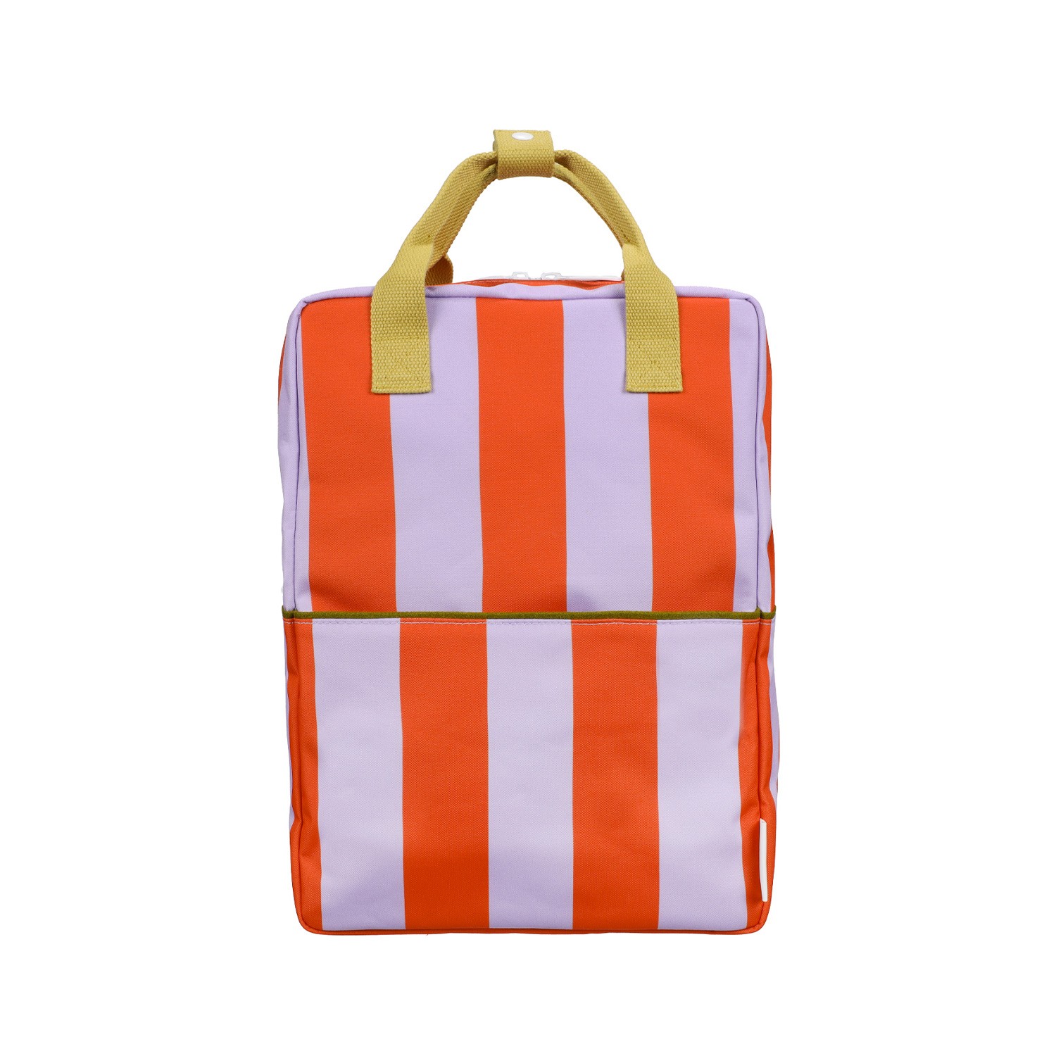 Questo zaino Sticky Lemon si veste di un'accattivante e solare fantasia a righe verticali larghe, perfetta per chi cerca un accessorio dinamico e pieno di personalità. In questa versione, il contrasto audace tra l'arancione vibrante e il lilla pastello crea un'estetica pop e allegra, unendo un tocco rétro a un design moderno e funzionale, ideale per la scuola, l'università o per chi ama viaggiare con stile. Un motivo geometrico fresco e di forte impatto visivo. Le righe larghe donano un senso di ordine e vitalità, completate dai manici giallo dorato in contrasto che aggiungono un tocco di eleganza sobria. Vano principale extra-capiente: progettato per ospitare libri, cartelle A4, laptop e tutto il necessario per la tua giornata. Un elastico interno mantiene la borraccia verticale ed evita fuoriuscite accidentali.